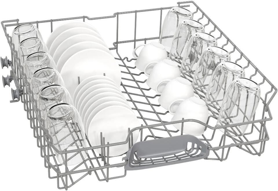 Встраиваемая посудомоечная машина Bosch SMV24AX04E — это высококачественное устройство, произведенное в Евросоюзе, предназначенное для полноразмерного использования. Она обладает черной панелью управления, которая идеально впишется в любой современный интерьер кухни. Дизайн этой модели подчеркивает ее функциональность и технологичность, а также гармонично сочетается с другими элементами кухонного оборудования. Особенностью машины является наличие инверторного двигателя EcoSilence Drive, который обеспечивает тихую и эффективную работу. Этот двигатель значительно улучшает качество мытья посуды и при этом экономит энергию. Встроенный теплообменник обеспечивает высококачественную сушку посуды, а система SpeedPerfectPlus позволяет ускорить процесс мытья без потери качества. Машина оснащена четырьмя стандартными программами мытья, которые позволяют выбрать оптимальный режим в зависимости от степени загрязнения посуды и экономии ресурсов. Три температурных режима позволяют настроить процесс мытья под конкретные типы посуды. Верхний короб машины можно регулировать по высоте, что позволяет разместить большое количество посуды различных размеров. В нижнем коробе предусмотрены две складные направляющие для тарелок и отдельная корзина для столовых приборов. Посудомоечная машина оснащена системой AquaStop, которая предотвращает протечки, а также функцией самоочистки фильтра. Материал внутреннего резервуара — комбинация нержавеющей стали и пластика, что обеспечивает долговечность и надежность машины.