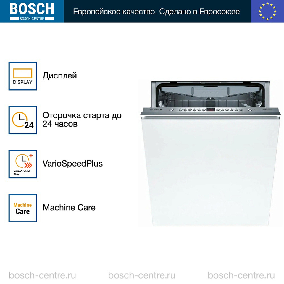 Встраиваемая посудомоечная машина Bosch SMV46KX55E оснащена системой ActiveWater, которая обеспечивает эффективное использование воды, и технологией защиты стекла, которая предотвращает повреждение деликатной стеклянной посуды. Электроника регенерации автоматически устанавливает жесткость воды, обеспечивая оптимальные условия для мытья посуды.