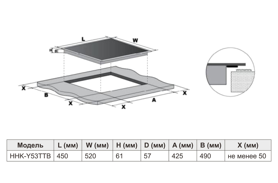Размер варочной панели 45см