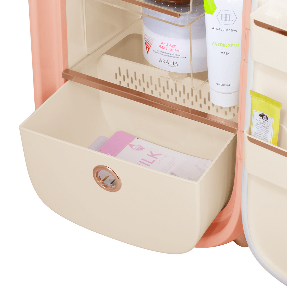 MAUNFELD MFF43 — идеальное решение для тех, кто заботится о себе. Стильная модель бьюти-холодильника предназначена для хранения: