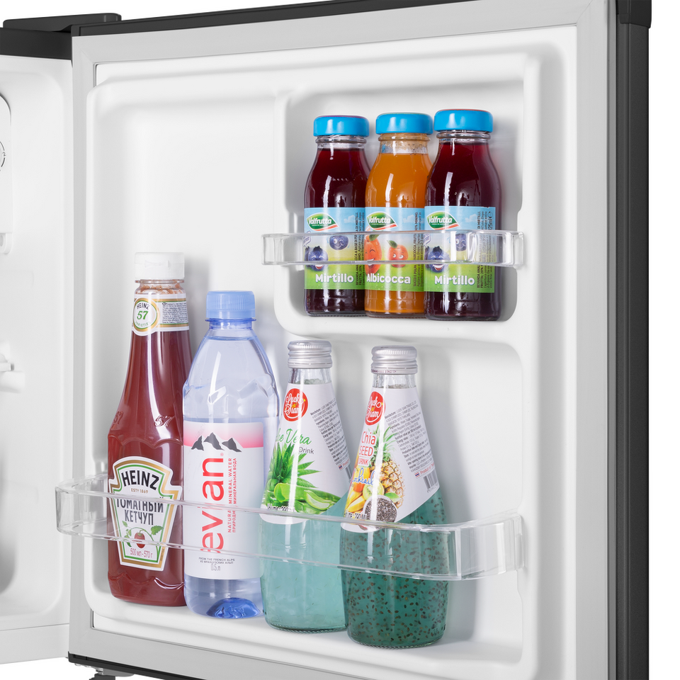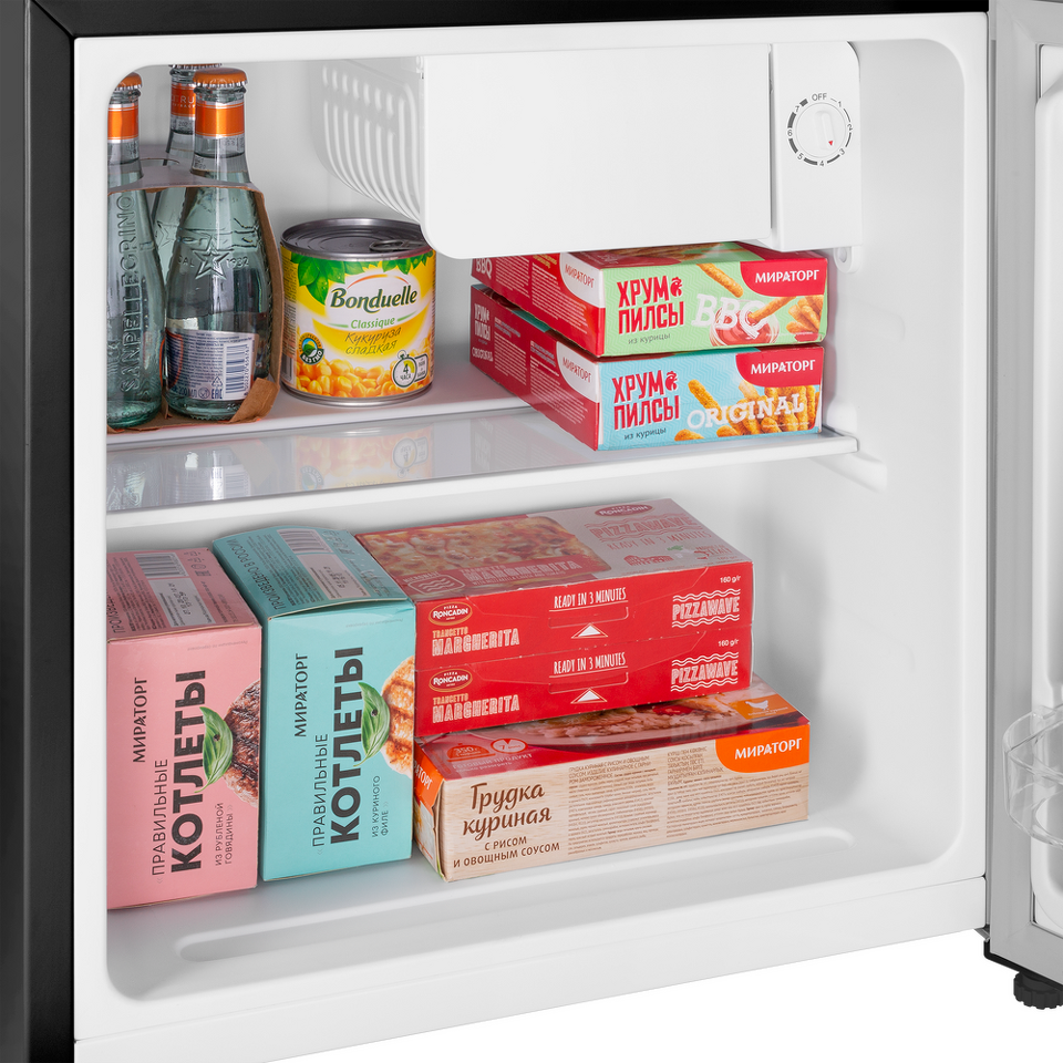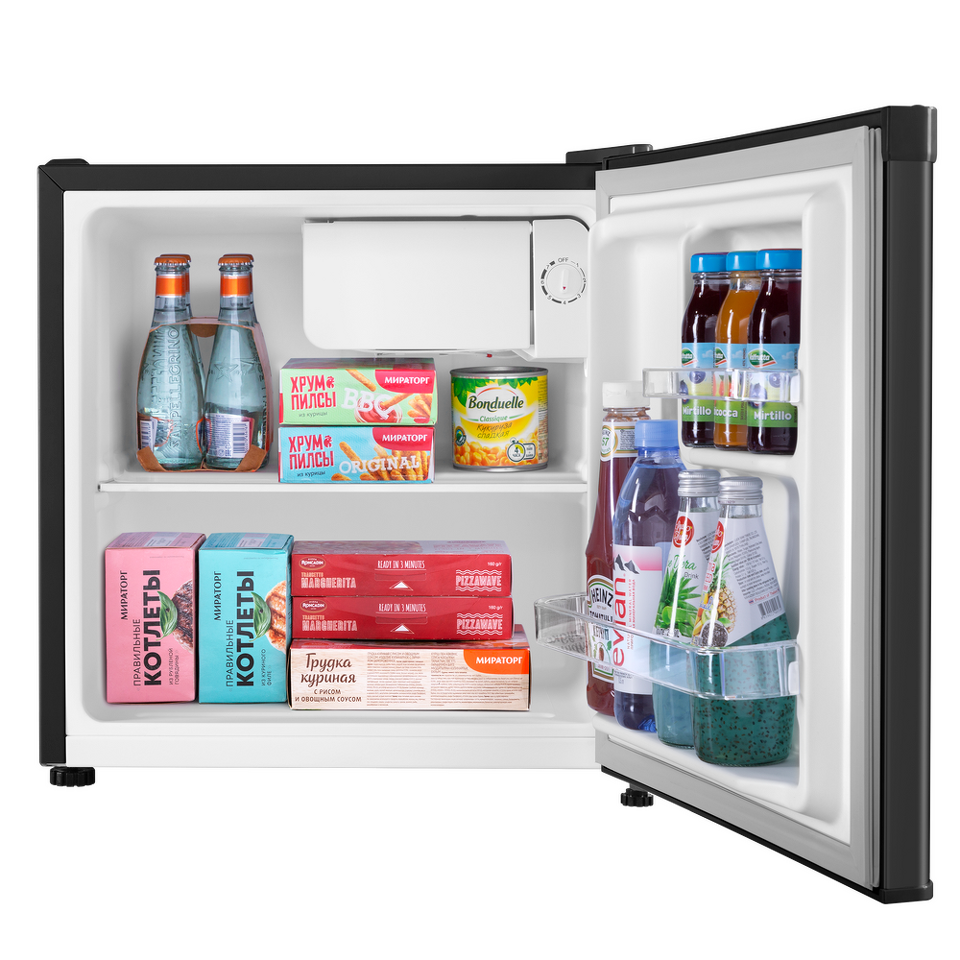Компактный однокамерный однодверный холодильник высотой всего 50 см с камерой охлаждения, располагающейся в верхнем углу.