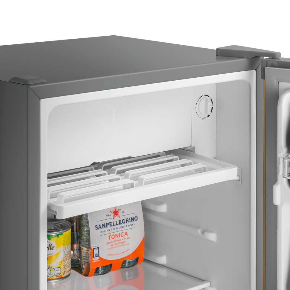 Компактный однокамерный однодверный холодильник высотой 83 см с камерой охлаждения.