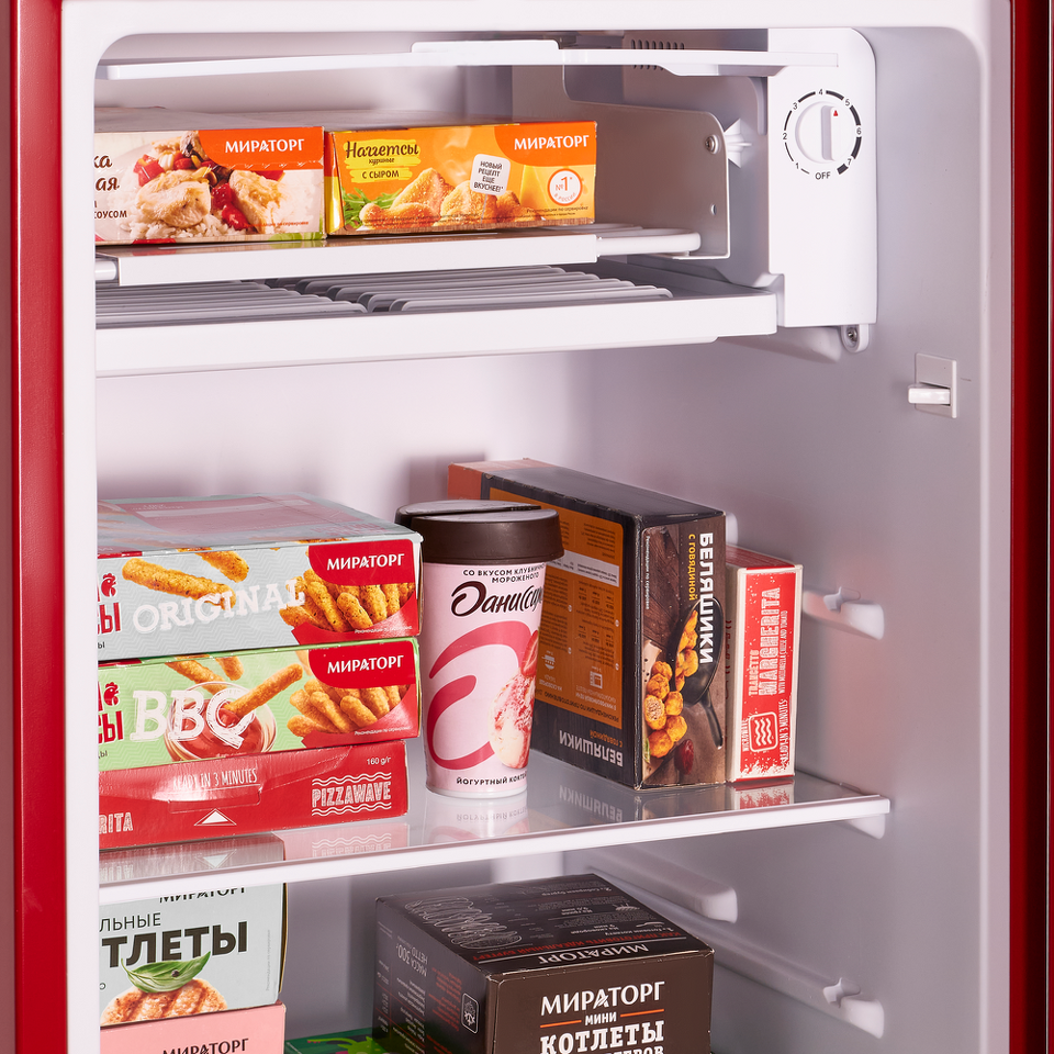 Компактный холодильник в ретро-стиле с встроенной камерой охлаждения обеспечит максимальную свежесть продуктов. 7 температурных режимов для эффективного охлаждения и заморозки ваших продуктов.