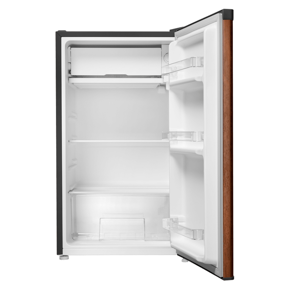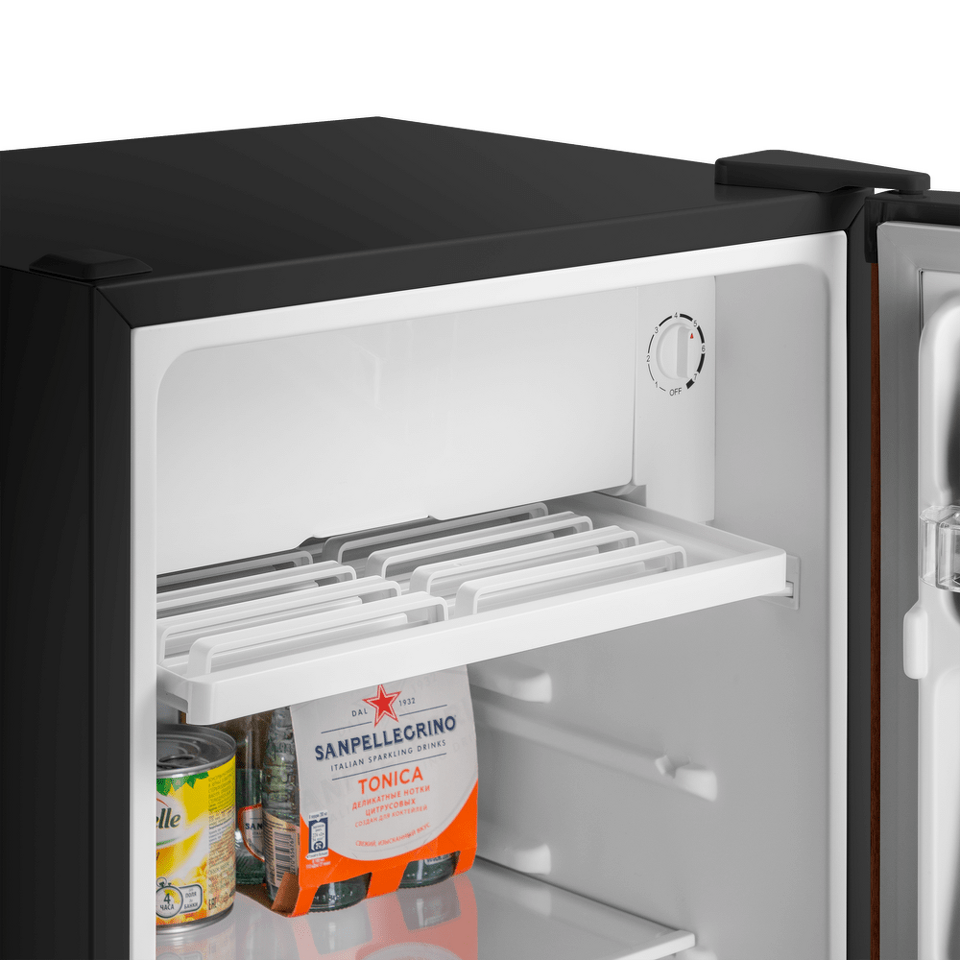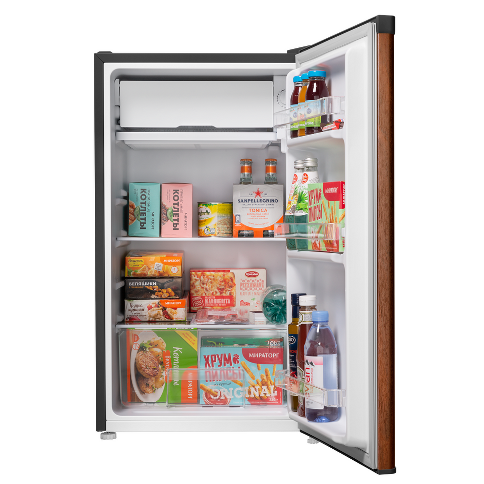 Компактный однокамерный однодверный холодильник высотой 83 см с камерой охлаждения.