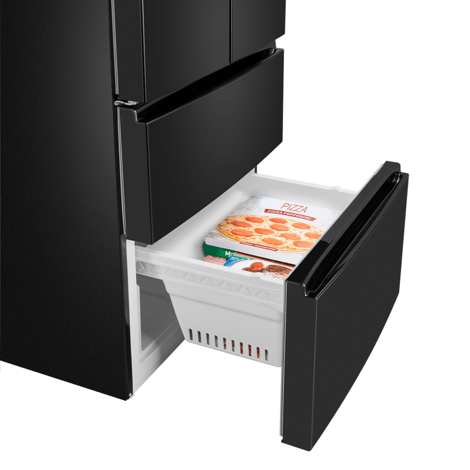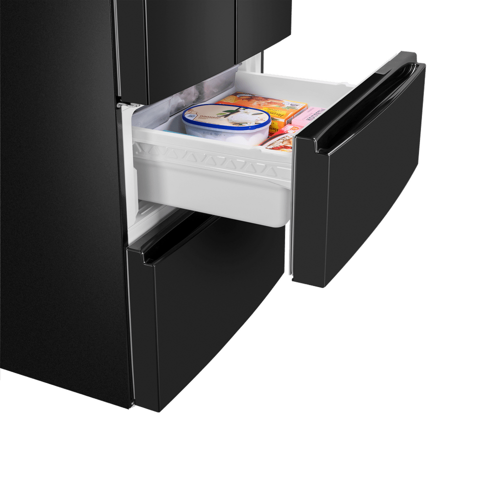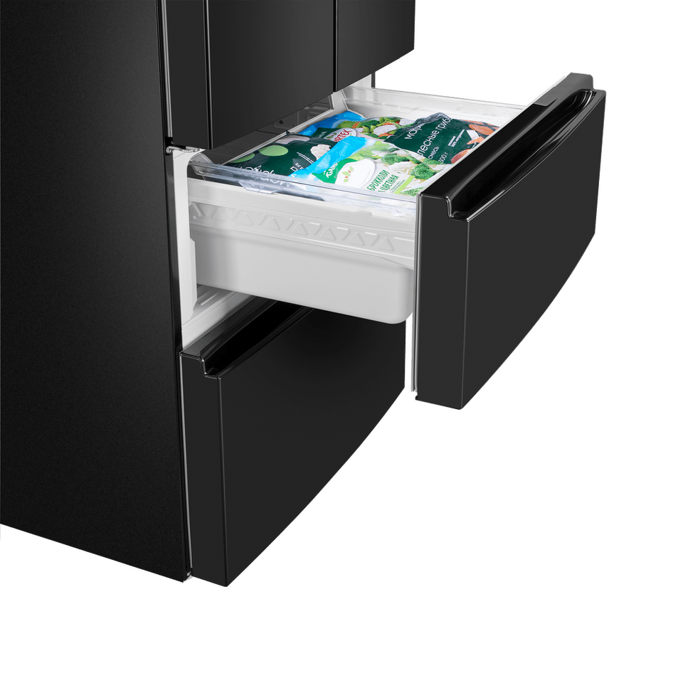 Холодильники с «французской дверцей» отличаются большой вместительностью и оригинальным дизайном. Выдвижные ящики морозильника превосходно удерживают холод и позволяют лучше разглядеть содержимое, чем распашные дверцы.