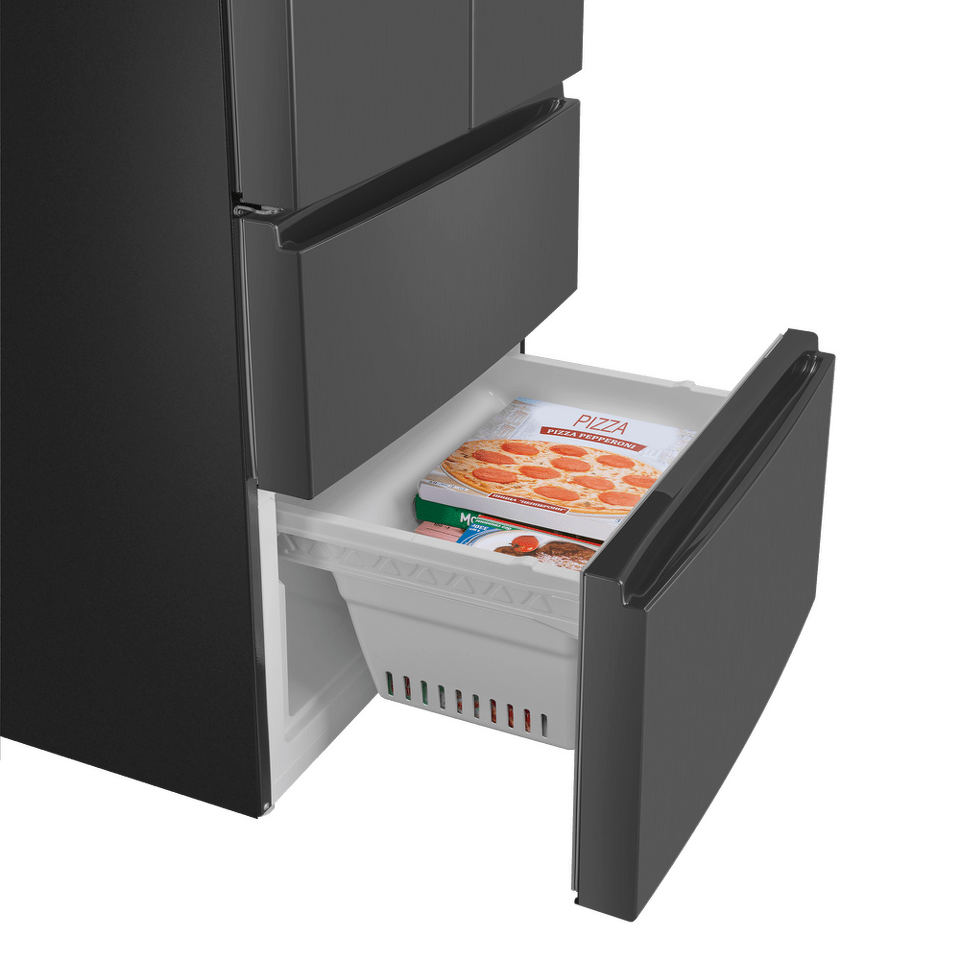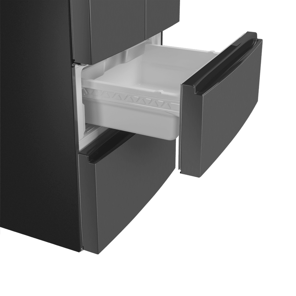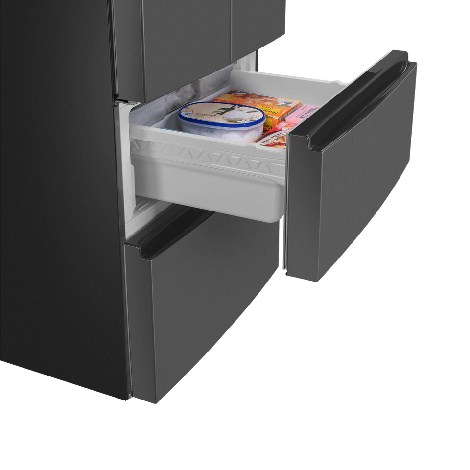 Холодильники с «французской дверцей» отличаются большой вместительностью и оригинальным дизайном. Выдвижные ящики морозильника превосходно удерживают холод и позволяют лучше разглядеть содержимое, чем распашные дверцы.