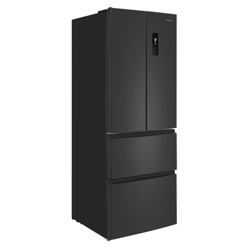 Вместительный холодильник French Door шириной 65 см с инверторным компрессором и сенсорным управлением с дисплеем не требует ручной разморозки благодаря технологии TOTAL NO FROST. Фасад выполнен из металла.