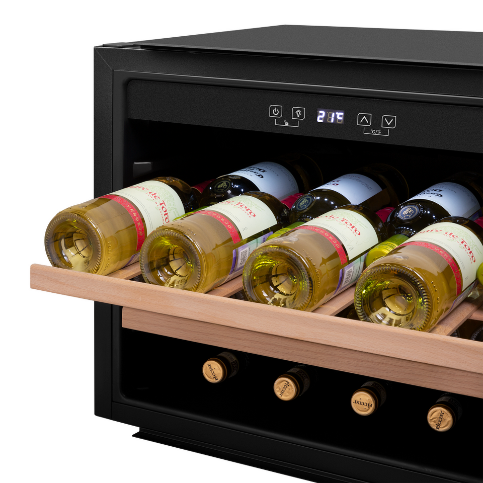 Благодаря продуманному внутреннему исполнению и съемным полкам вы сможете размещать до 28 бутылок. При желании можно извлечь полку и разместить большее количество бутылок.