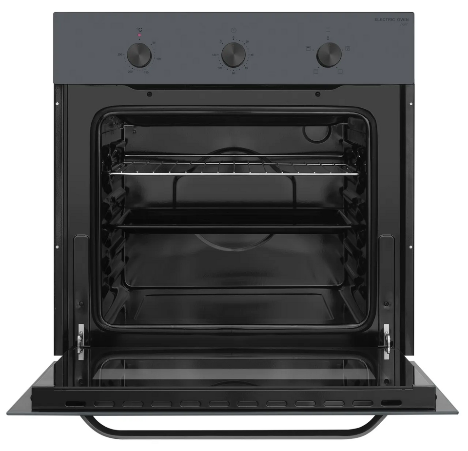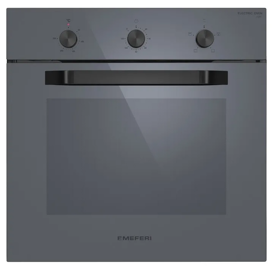 MEFERI MEO604GR LIGHT — современная серая духовка, которая органично впишется в кухонный гарнитур и подойдёт для ежедневной готовки и домашней выпечки. Модель сочетает лаконичный дизайн, понятное механическое управление и энергоэффективность класса А, обеспечивая комфортное приготовление блюд для всей семьи.