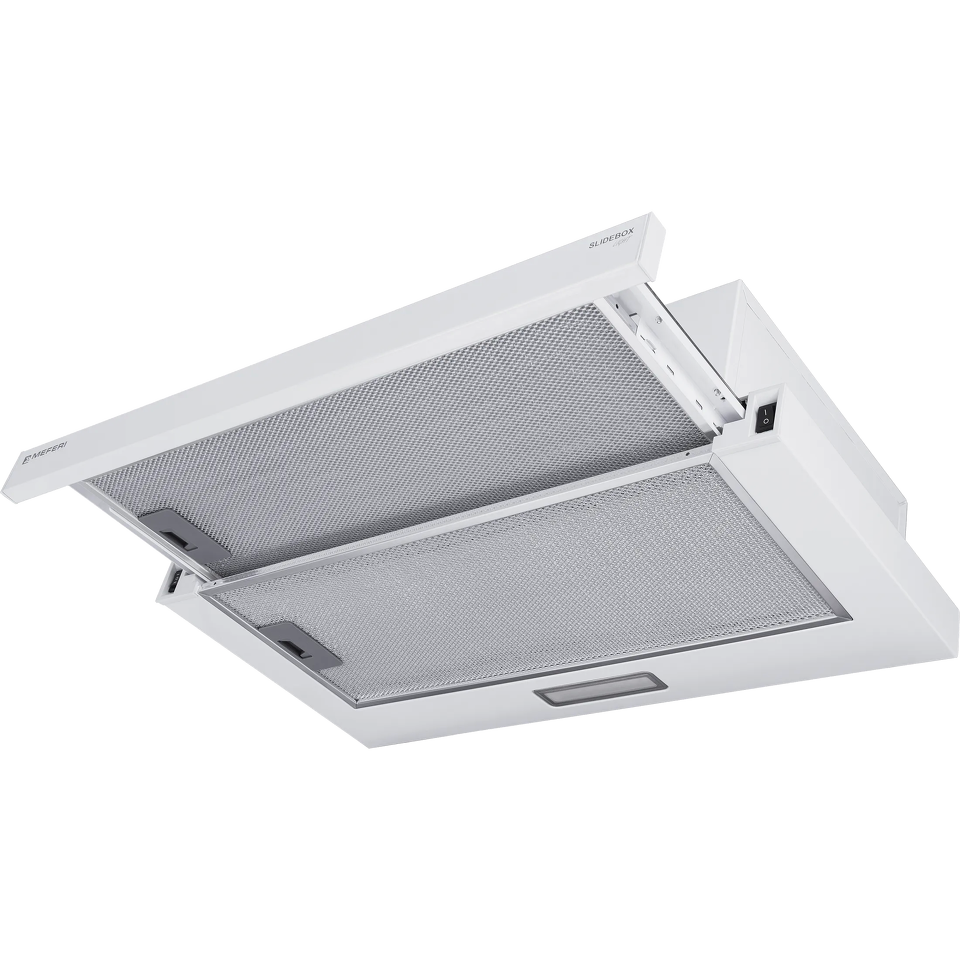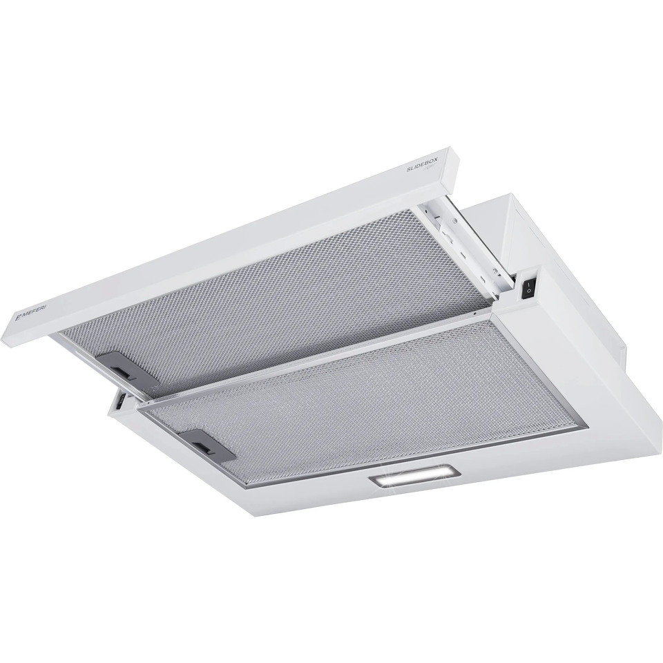 MEFERI SLIDEBOX60WH LIGHT объединяет в себе функциональность и стиль, обеспечивая вашей кухне надежную вентиляцию и придавая ей особый шарм.