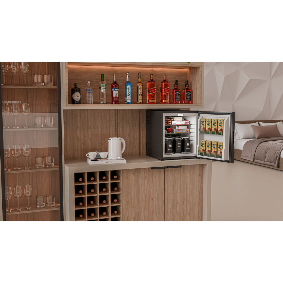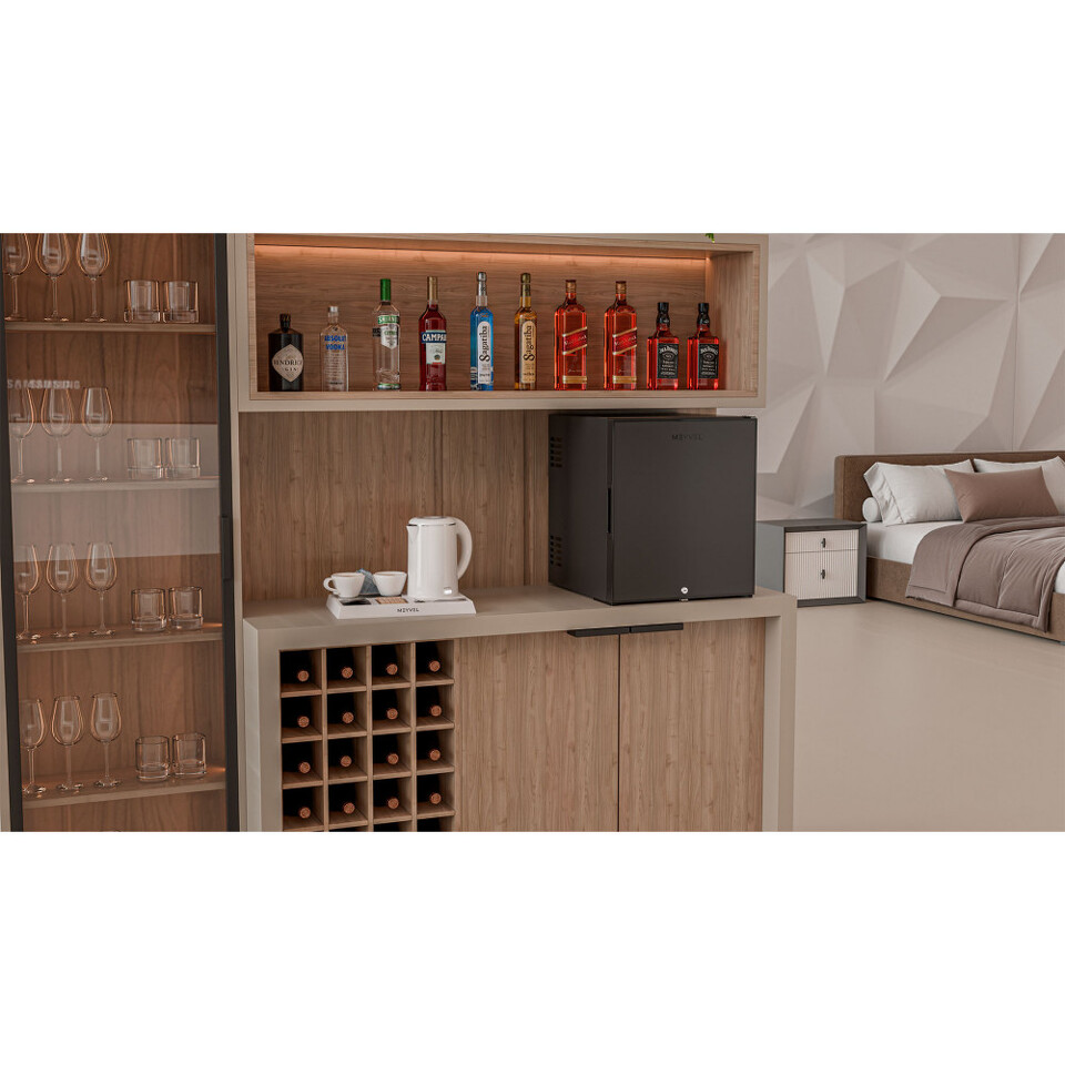 В абсорбционной системе охлаждения отсутствуют движущиеся части, поэтому прибор работает бесшумно, что важно для гостиниц, спален и офисов, где тишина играет важную роль. Мини-бар не создает вибраций и издает неприятных звуков, не нарушая сон или рабочую атмосферу.