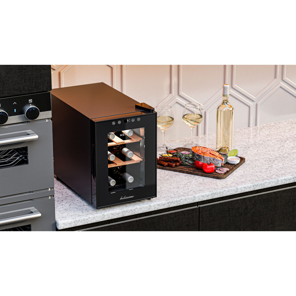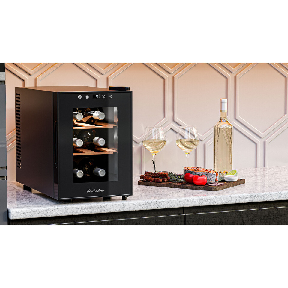 Модель рассчитана всего на 6 бутылок, поэтому такой винный шкаф легко вписывается в небольшую кухню, кабинет или даже гостиную, не занимая много места, но чётко выполняя свои функции. Он прекрасно подойдёт тем, кто только начинает собирать коллекцию, или предпочитает держать под рукой небольшой запас любимых вин.