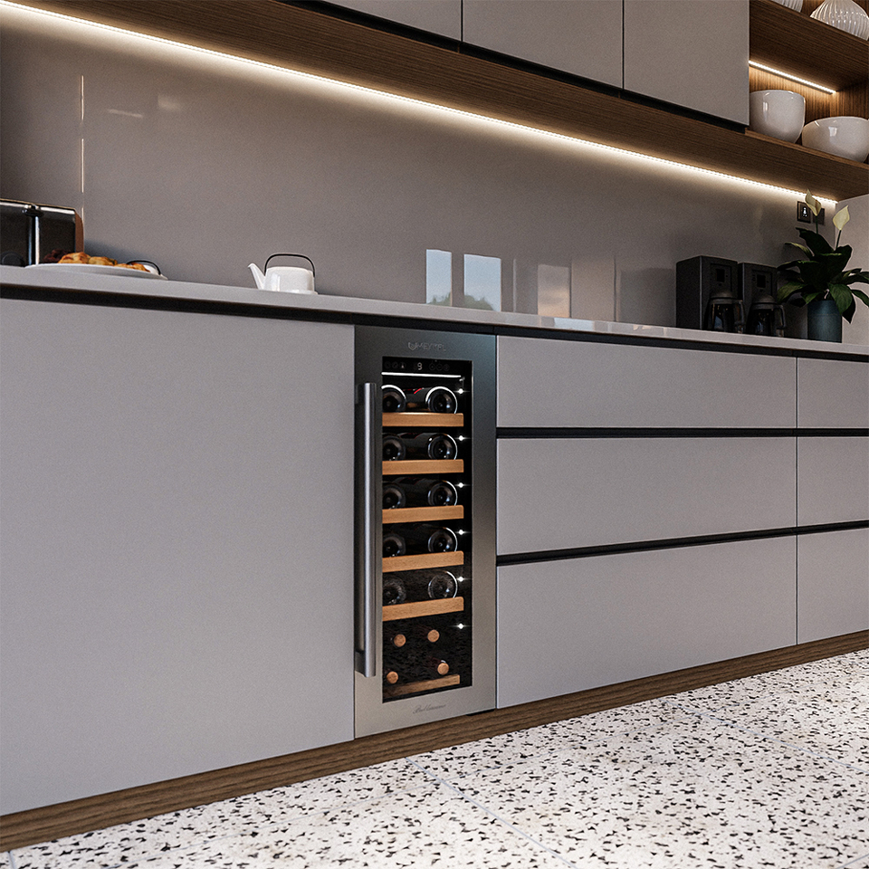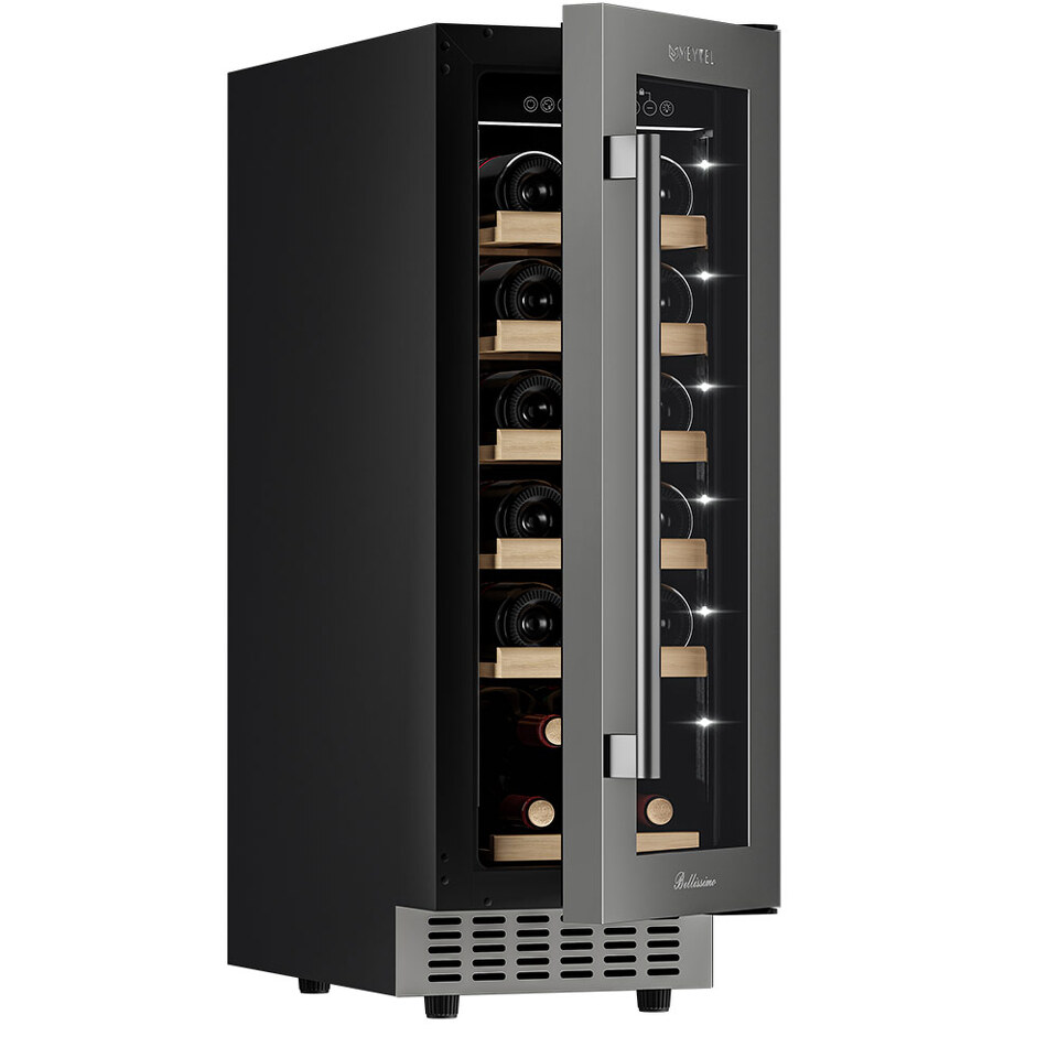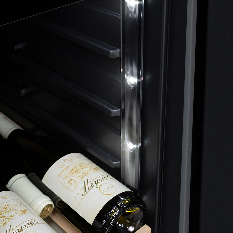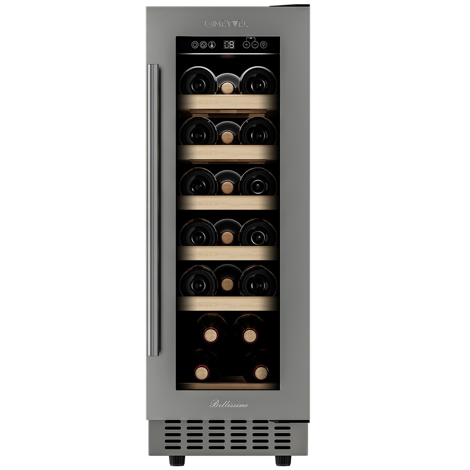 Компрессорный винный шкаф Meyvel MV19-KST1 обладает оптимальной вместимостью и даёт возможность разместить до 19 бутылок стандартного типа Бордо (0,75 л). Располагаются они на выдвижных полках из дерева. Внутреннее пространство шкафа поддерживает комфортную для вина температуру от +5°C до +20°C. Так же, эта модель поддерживает влажность в диапазоне 60-80%, как в настоящем винном погребе.