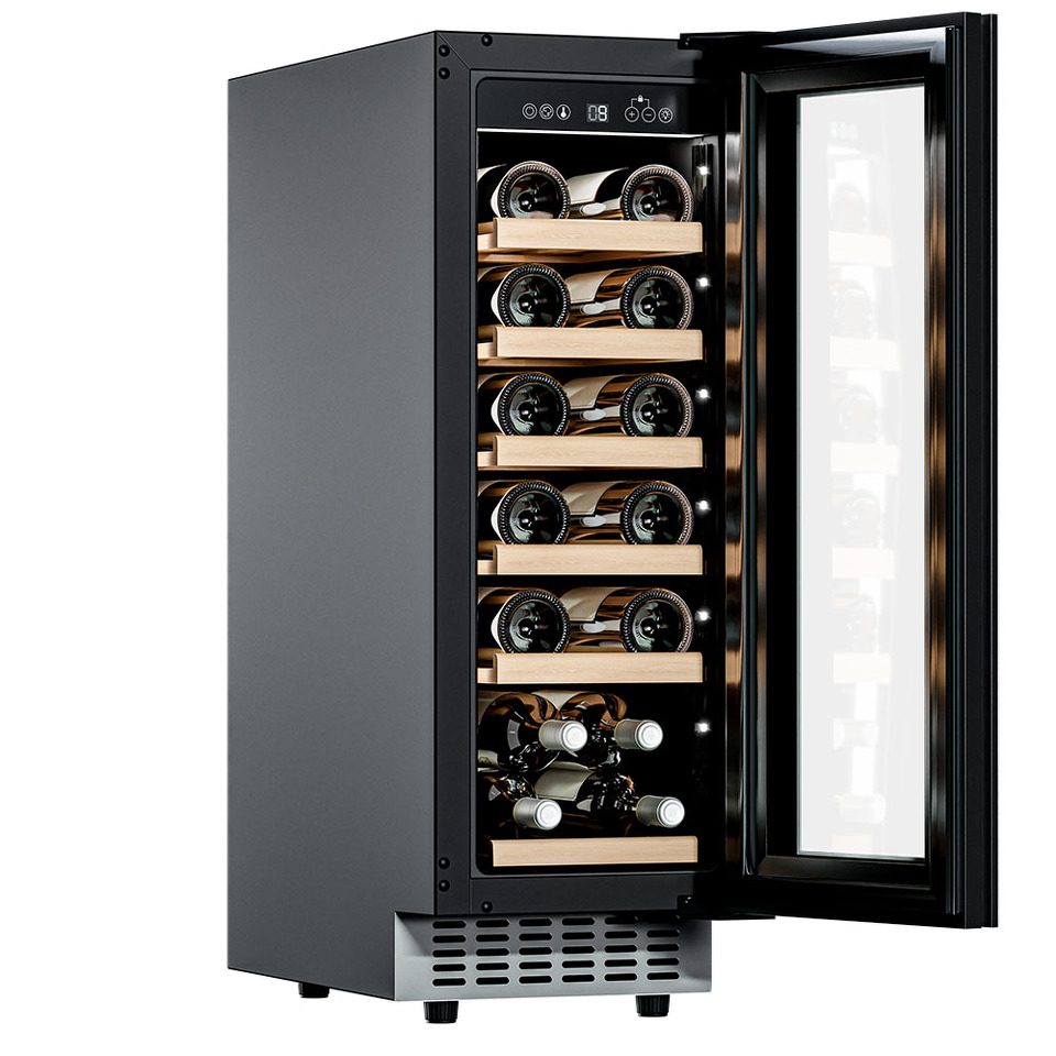 Компрессорный винный шкаф Meyvel MV19NH-KWT1 обладает оптимальной вместимостью и даёт возможность разместить до 19 бутылок стандартного типа Бордо (0,75 л). Располагаются они на выдвижных полках из дерева. Внутреннее пространство шкафа поддерживает комфортную для вина температуру от +5°C до +20°C. Так же, эта модель поддерживает влажность в диапазоне 60-80%, как в настоящем винном погребе.