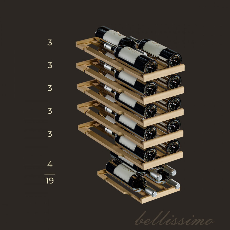 Вместимость 19 бутылок стандартного типа Бордо (0,75 л);