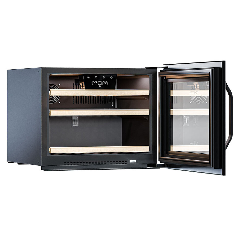 Модель MV22-KBB1 имеет привлекательный внешний вид, сочетающий в себе неподвластное времени очарование натуральных материалов с высокотехнологичными системами сохранения пищевых продуктов. Винный холодильник Meyvel MV22-KBB1 оснащен дверью с защитой от ультрафиолетовых лучей и отлично подойдет для хранения и созревания различных сортов вин. Статическая система охлаждения обеспечивает оптимальную температуру для вина и сохраняет необходимую влажность внутри камеры.