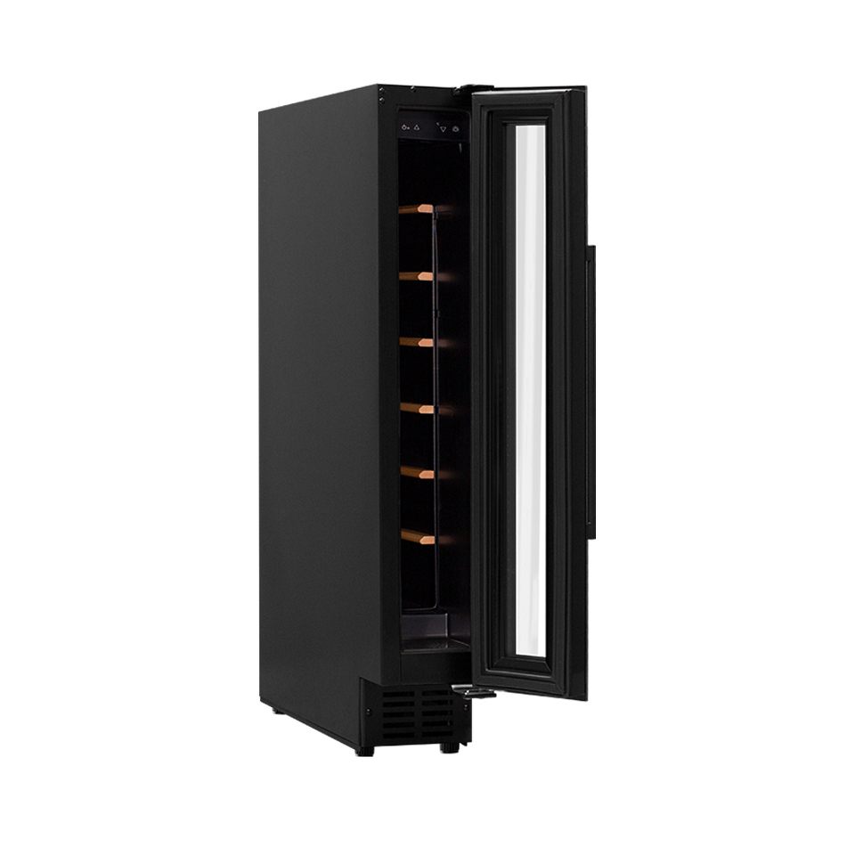 Компрессорный винный шкаф Meyvel MV8-KBT1 обладает большой вместимостью и способен разместить до 8 бутылок. Располагаются они на полках из массива бука. Внутреннее пространство шкафа имеет возможность настраивать температуру в диапазоне от + 5°C до +18°C. Холодильник поддерживает влажность в диапазоне 60-80%, как в настоящем винном погребе.