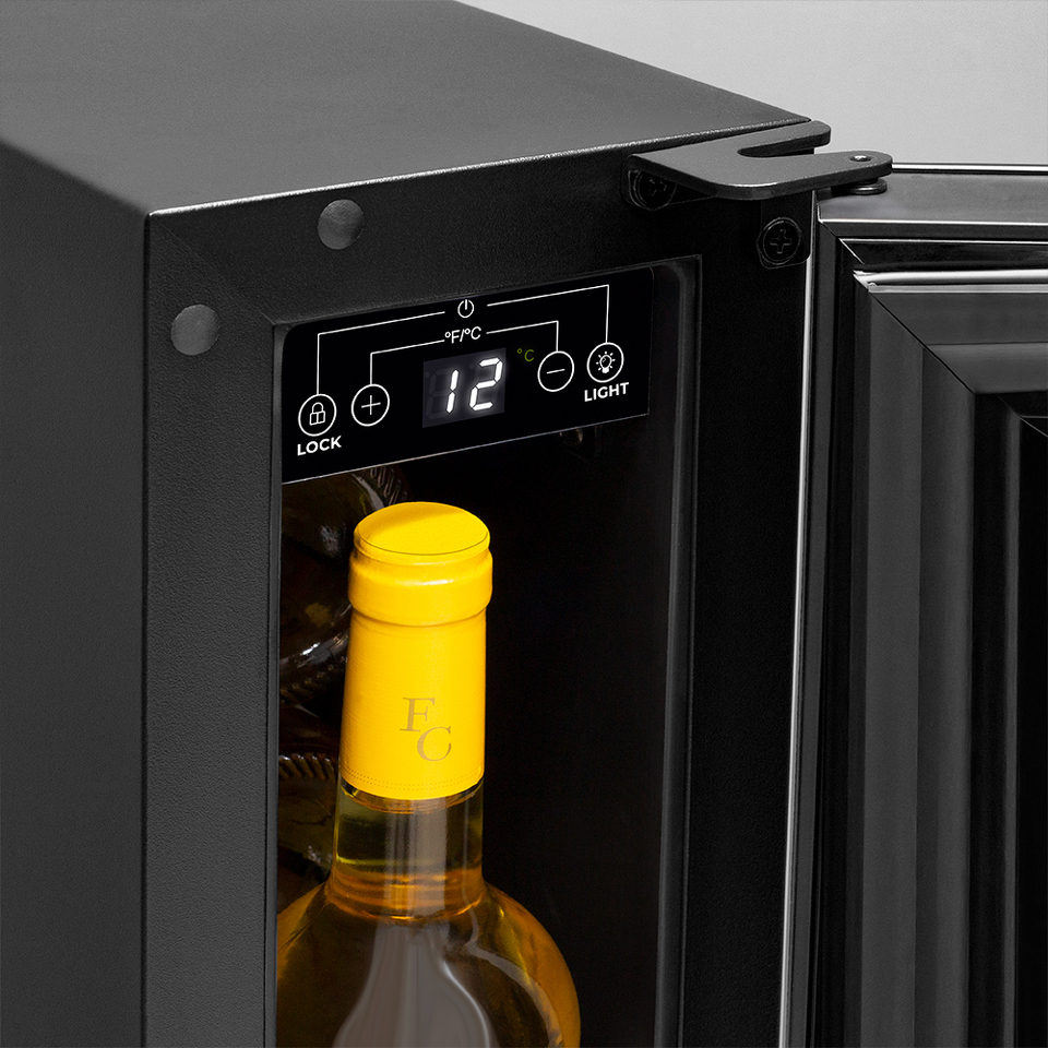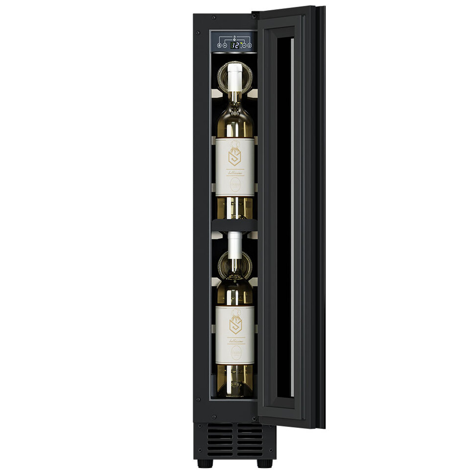 Компрессорный винный шкаф Meyvel MV9NH-KBT1 несмотря на небольшой размер, обладает большой вместимостью и дает возможность разместить до 9 бутылок. Располагаются они на держателях из массива бука. Внутреннее пространство шкафа поддерживает комфортную для вина температуру от +5℃ до +20℃ и имеет самую большую вместимость среди аналогичных винных шкафов. Преимуществом этой модели является возможность разместить внутри одну высокую бутылку. Так же, MV9NH-KBT1 данная модель поддерживает влажность в диапазоне 60-80%, как в настоящем винном погребе.