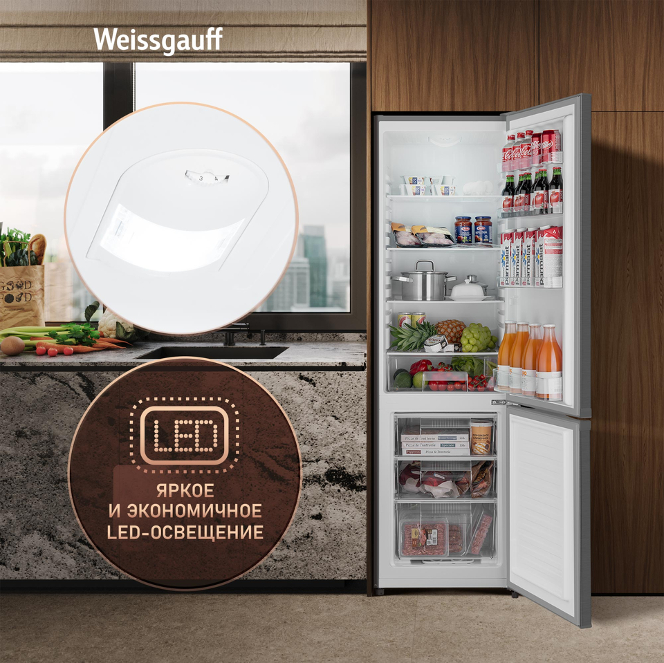 Холодильник с нижней морозилкой Weissgauff WRK 1800 Defrost Dark Grey