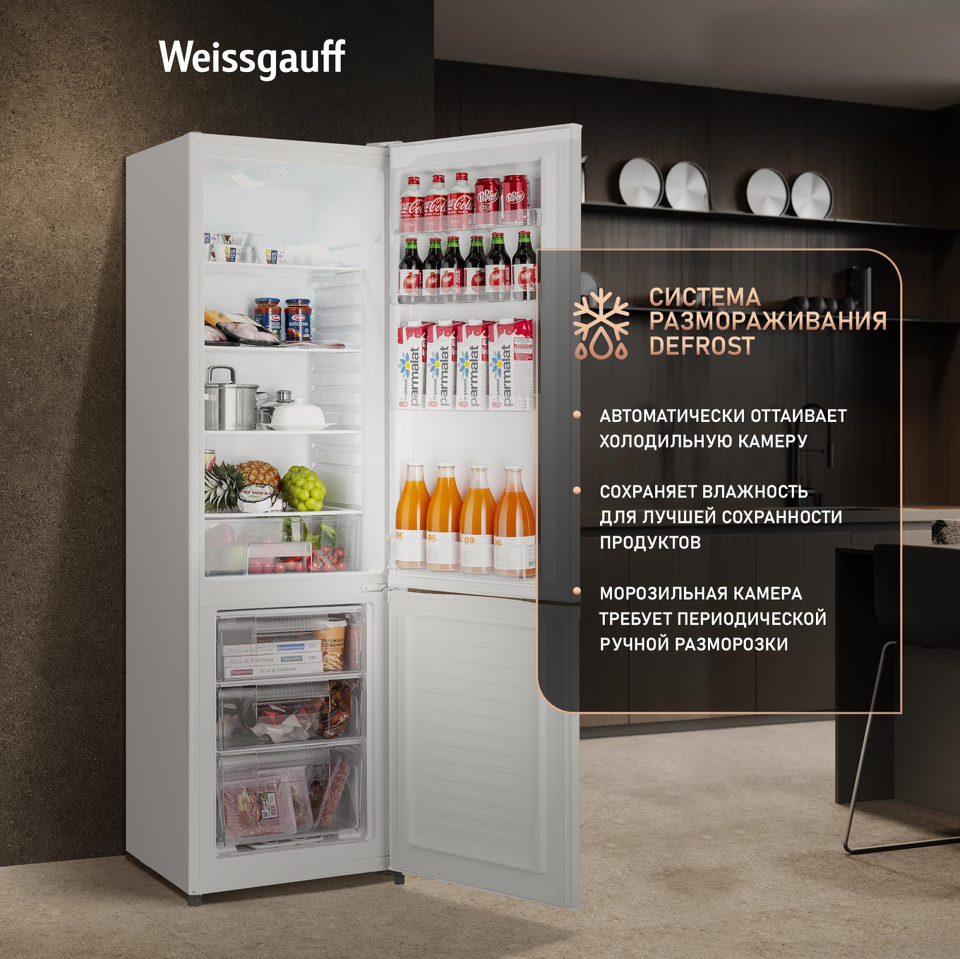 Холодильник с нижней морозилкой Weissgauff WRK 1800 Defrost White