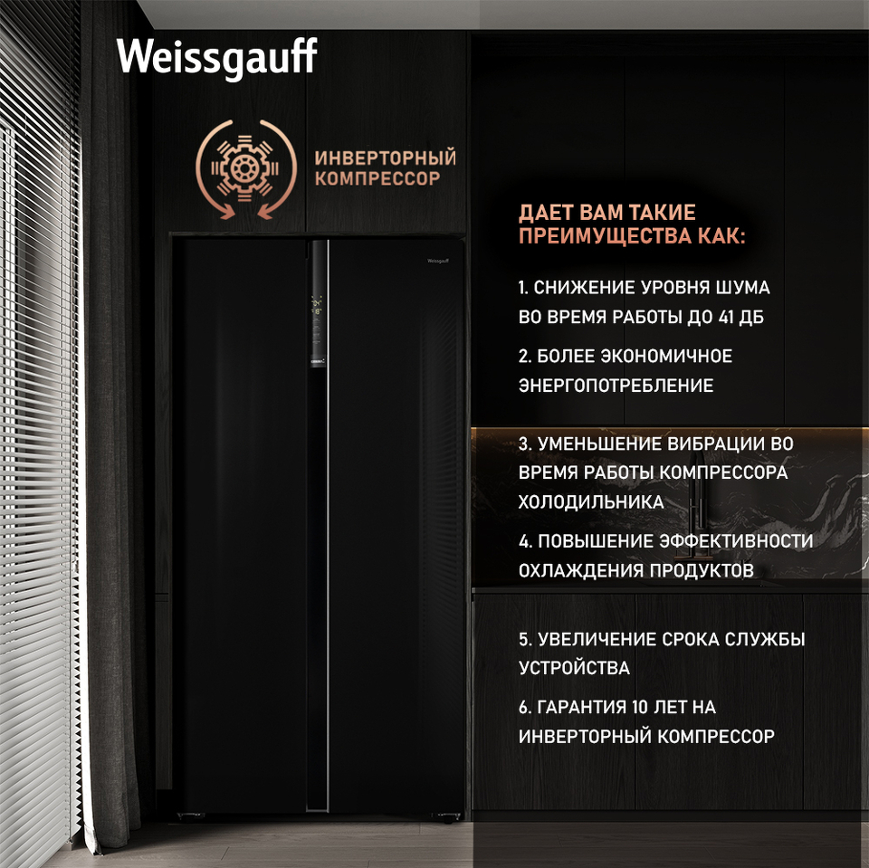 Холодильник side by side Weissgauff WSBS 600 BG NoFrost Inverter