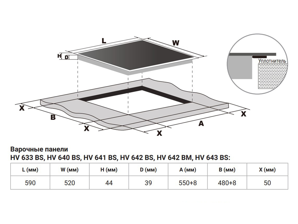 Размер варочной панели 60см