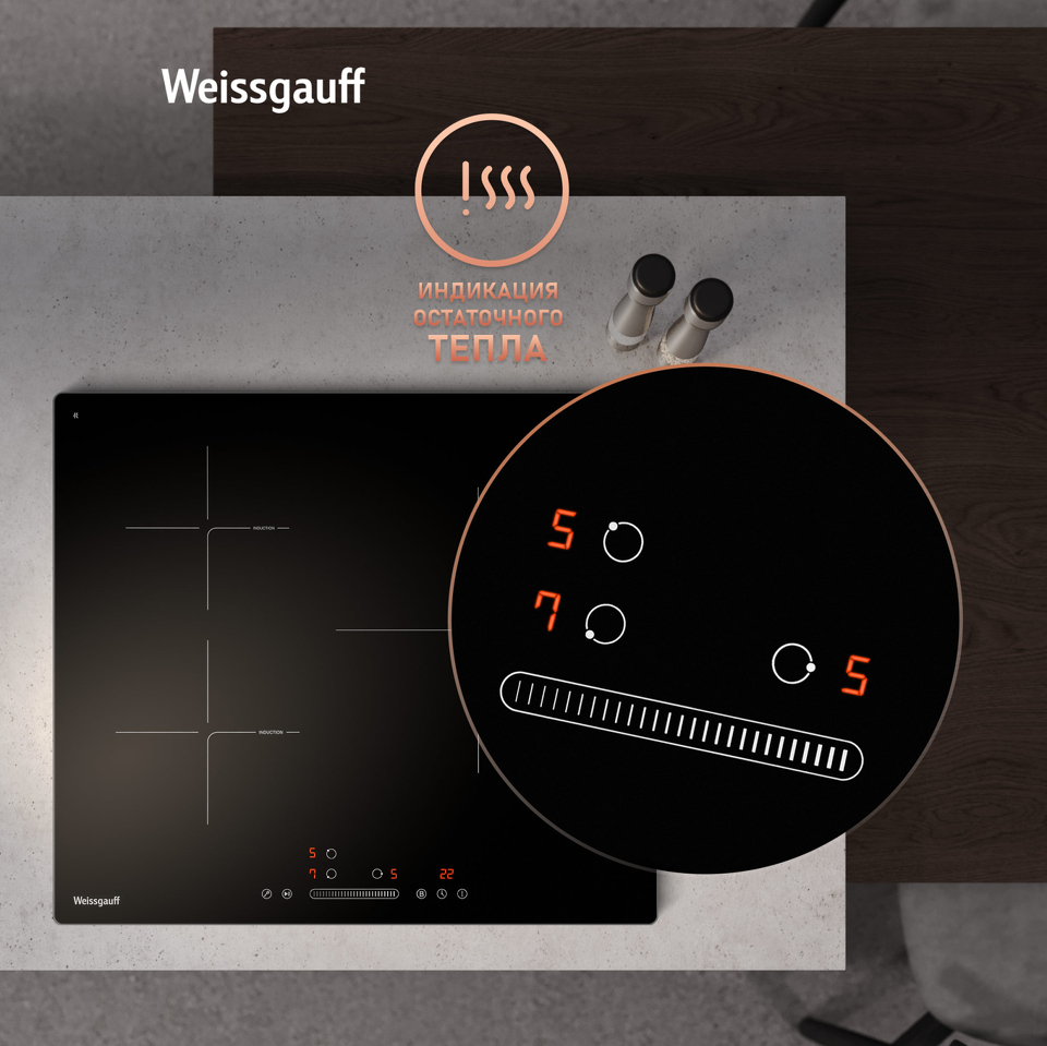 Индукционная панель Weissgauff с особым дизайном конфорок Cross-Zone и непрерывным нагревом выводит на новый уровень понимание того, насколько удобной и просторной может быть рабочая поверхность с тремя конфорками!