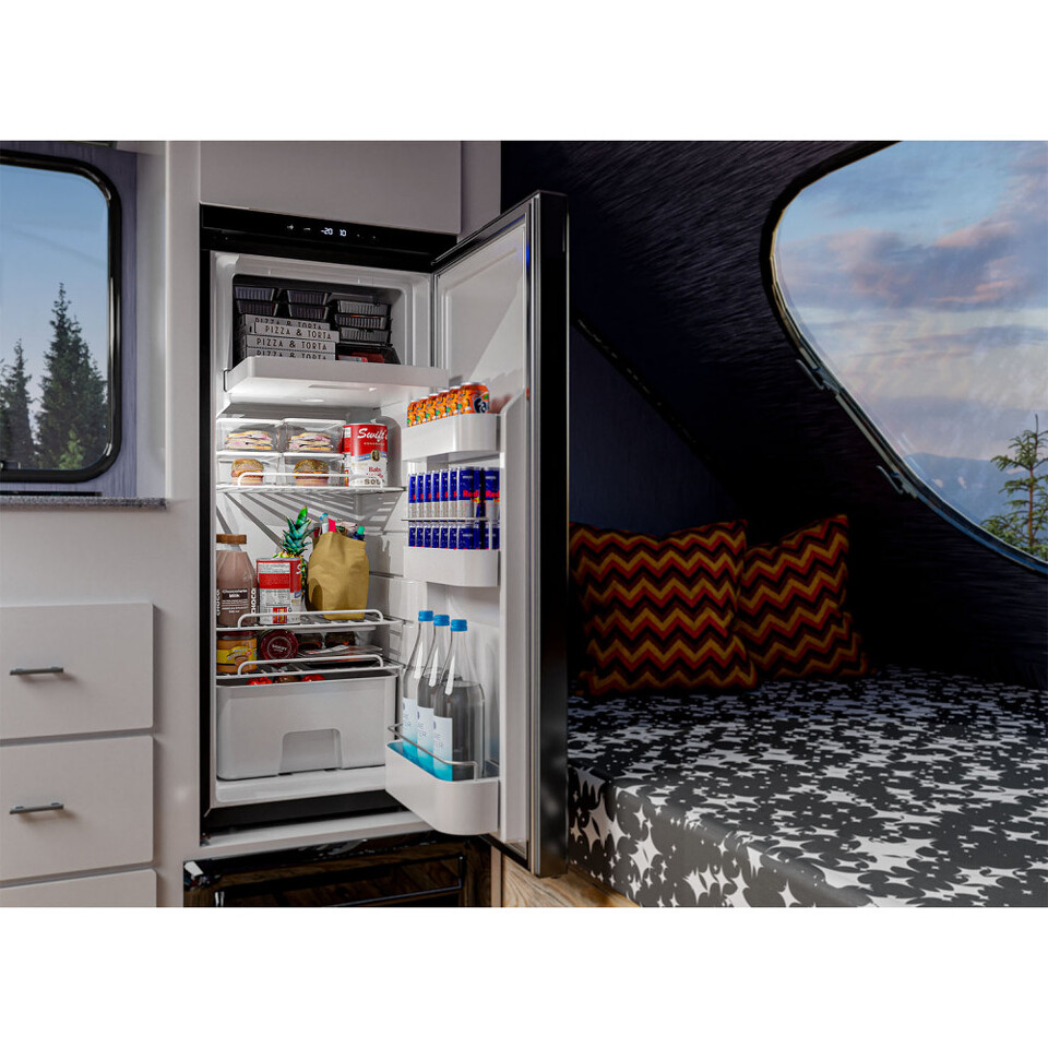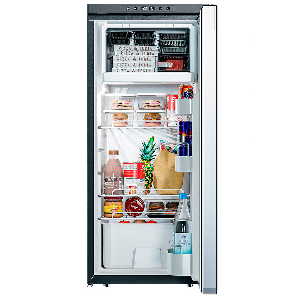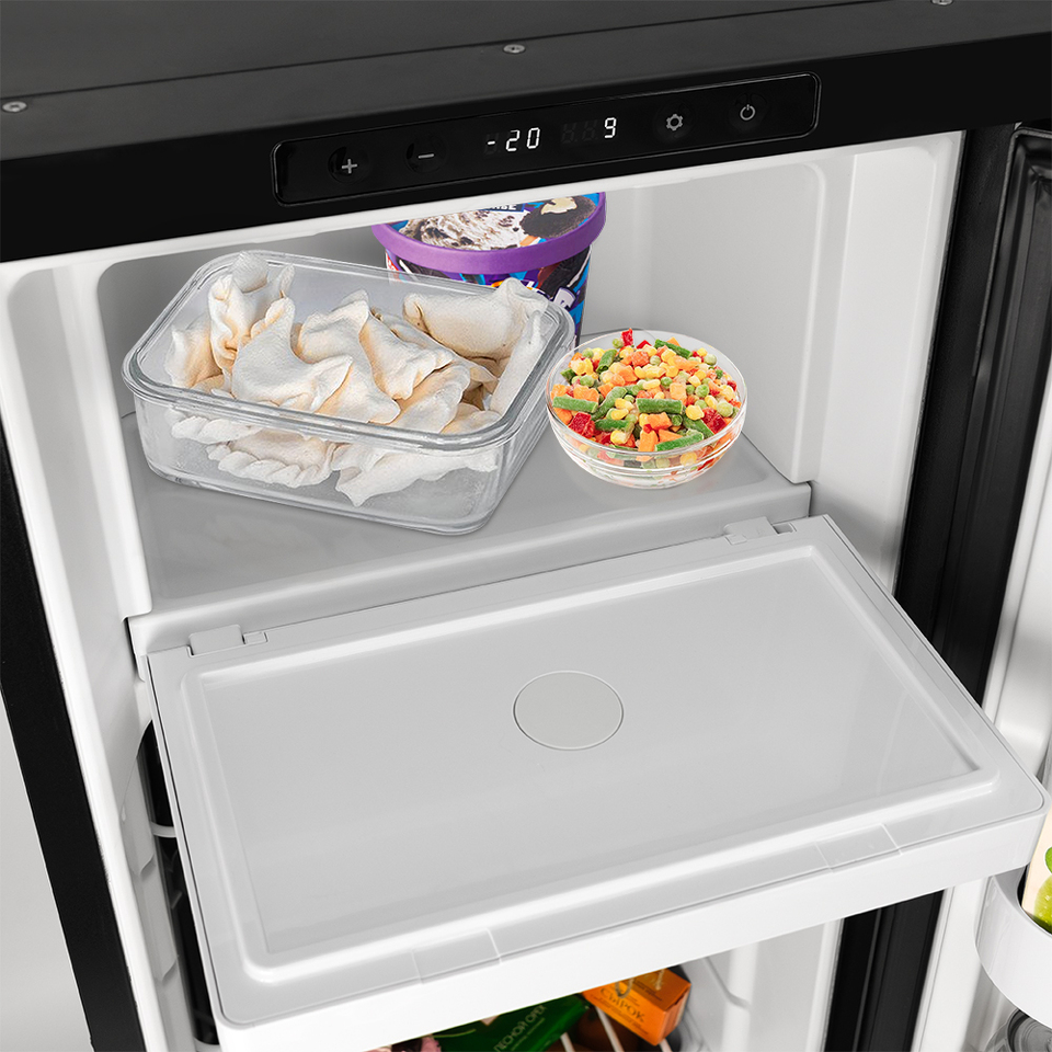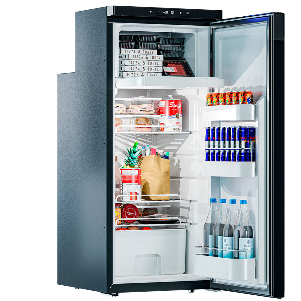 Автохолодильник AF-DB90X это одна из самых востребованных встраиваемых моделей. Он предназначен для установки в микроавтобусах, грузовиках, на яхтах, катерах и конечно же в автодомах и кемперах. Имеет большой объём на 91 л и возможность питания от сети 12/24 В. Холодильник разделён на две камеры: для охлаждения и для обычной или глубокой заморозки (до -20°C).