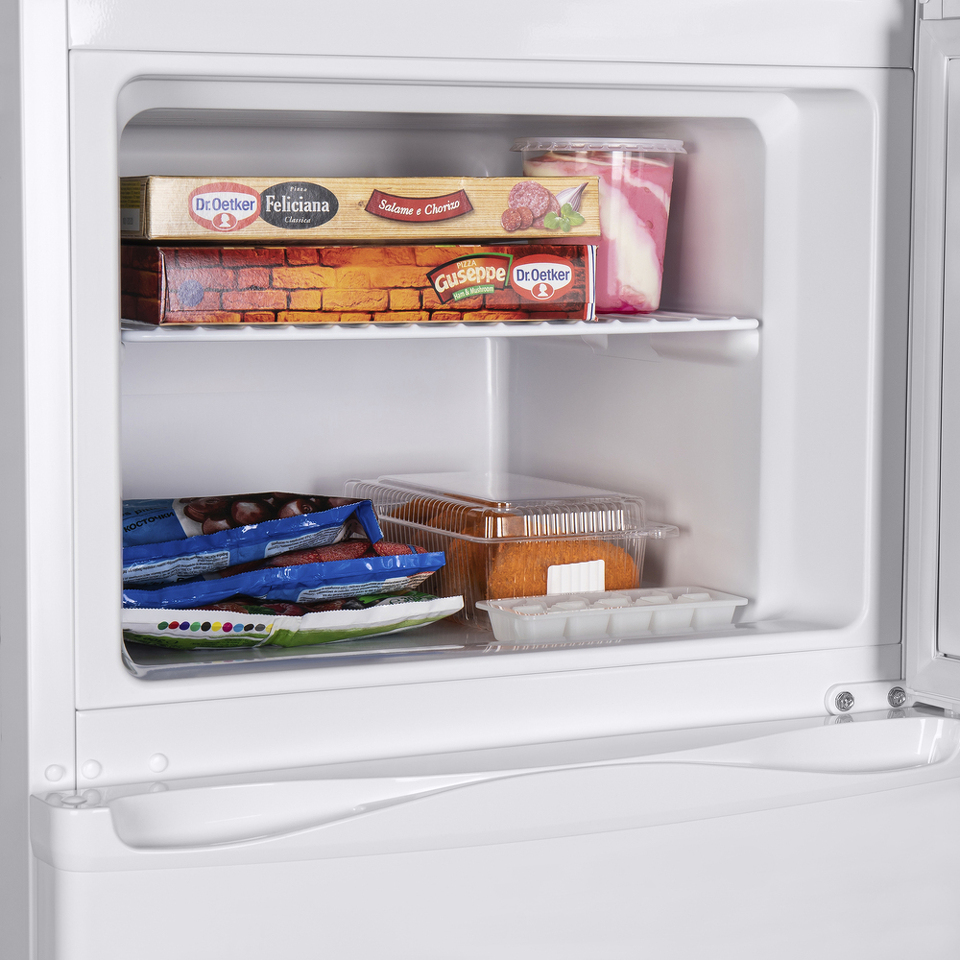 Современный двухкамерный холодильник с верхней морозильной камерой объемом 41 л. Система охлаждения — DeFrost.