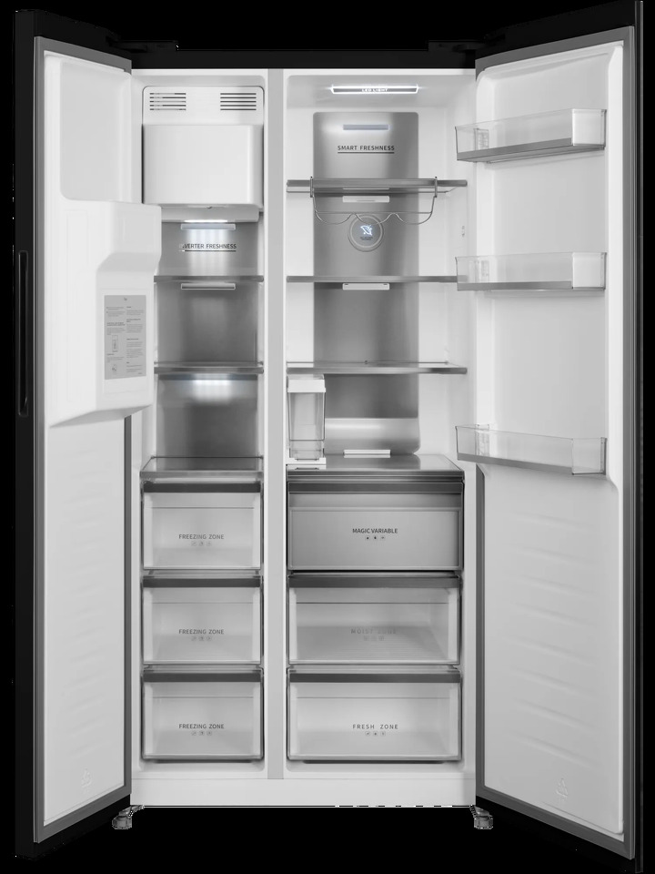 Вместительный двухкамерный холодильник HIBERG i-RFS 655 GB с возможностью встраивания — это идеальный выбор для тех, кто ценит современный подход к хранению продуктов и выразительный дизайн. Технологии для создания свежести Встроенный ледогенератор открывает дополнительные сценарии использования и значительно расширяет функциональность модели. Диспенсер позволяет получить кубики льда, ледяную крошку или холодную воду. Ёмкость для воды рассчитана на 3 литра, а производительность ледогенератора достигает до 1,5 кг льда в сутки — оптимально для семьи и приёма гостей. Удобство и комфорт Система Total No Frost предотвращает образование наледи и инея, избавляя от необходимости ручного размораживания. Технология Metal Cooling снижает температурные колебания при открывании дверей и помогает поддерживать стабильные условия хранения. Инверторный компрессор обеспечивает тихую работу — уровень шума не превышает 38 дБ — и высокую энергоэффективность класса A++. Сочетание LED и Ambient-подсветки обеспечивает отличный обзор внутреннего пространства, а фантомный сенсорный дисплей, скрытый за фасадом из чёрного стекла, подчёркивает минималистичный дизайн и позволяет точно и интуитивно настраивать параметры работы. Эргономика и функциональность В холодильной камере предусмотрены 4 полки из закалённого стекла с регулировкой по высоте, два выдвижных ящика для овощей и фруктов, а также полка для бутылок. Морозильное отделение оснащено 3 стеклянными полками, 3 ящиками и отсеком для хранения льда, что делает организацию пространства удобной и наглядной. Отдельного внимания заслуживает Flex Zone с диапазоном температур от –4 °C до +4 °C — решение, которое позволяет гибко адаптировать холодильник под текущие задачи и разные сценарии хранения. Основные преимущества: Общий объём 580 литров — оптимально для большой семьи Льдогенератор до 1,5 кг льда в сутки (кубики, ледяная крошка, холодная вода) Система Total No Frost — без ручного размораживания Фантомный сенсорный дисплей Flex Zone с регулировкой температуры от –4 °C до +4 °C Мощность замораживания до 10 кг/сутки Класс энергоэффективности A++ и низкий уровень шума (38 дБ) Диспенсер для воды и льда LED и Ambient-подсветка Возможность встраивания в кухонный гарнитур Холодильник HIBERG i-RFS 655 GB в фасаде из чёрного стекла станет не только практичным решением для хранения продуктов, но и выразительным акцентом современного интерьера. Гарантия на холодильники HIBERG — 2 года.