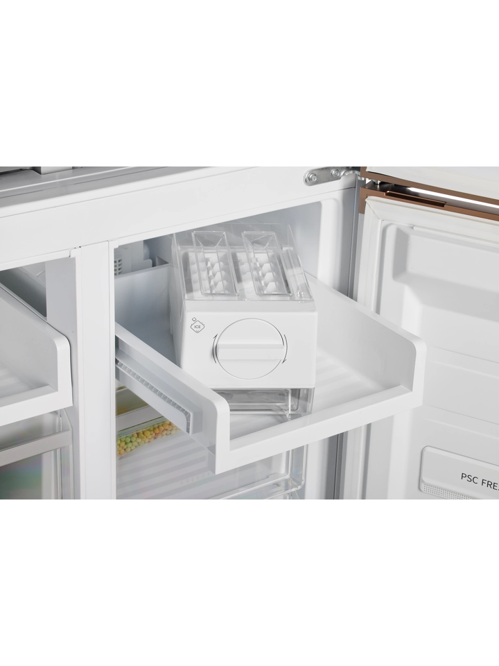 Эргономичные ручки дополняют стильную внешность модели HIBERG i-RFQ 630G WS, сохраняя целостность дизайна. Холодильник высотой 190 см и общим объемом 515 л будет лаконично смотреться в любом пространстве. На двери расположен цветной сенсорный LED-дисплей, с помощью которого можно выбрать нужный режим и отрегулировать параметры температуры, подстроив под личные предпочтения.