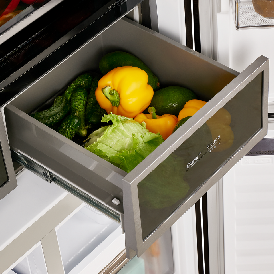 Регулируемая влажность и температура около 0 градусов — специальная зона для качественного хранения мяса, рыбы, морепродуктов, сыров и молочных продуктов.