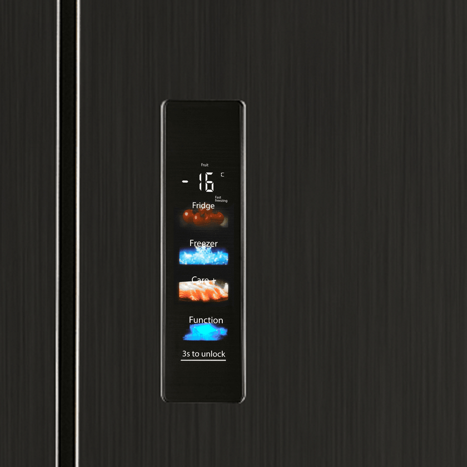 Благодаря LED-дисплею и управлению на дверце, можно не открывать холодильник для смены настроек. Внутрь не попадает тёплый воздух — лучше сохранность продуктов и меньше расход электроэнергии
