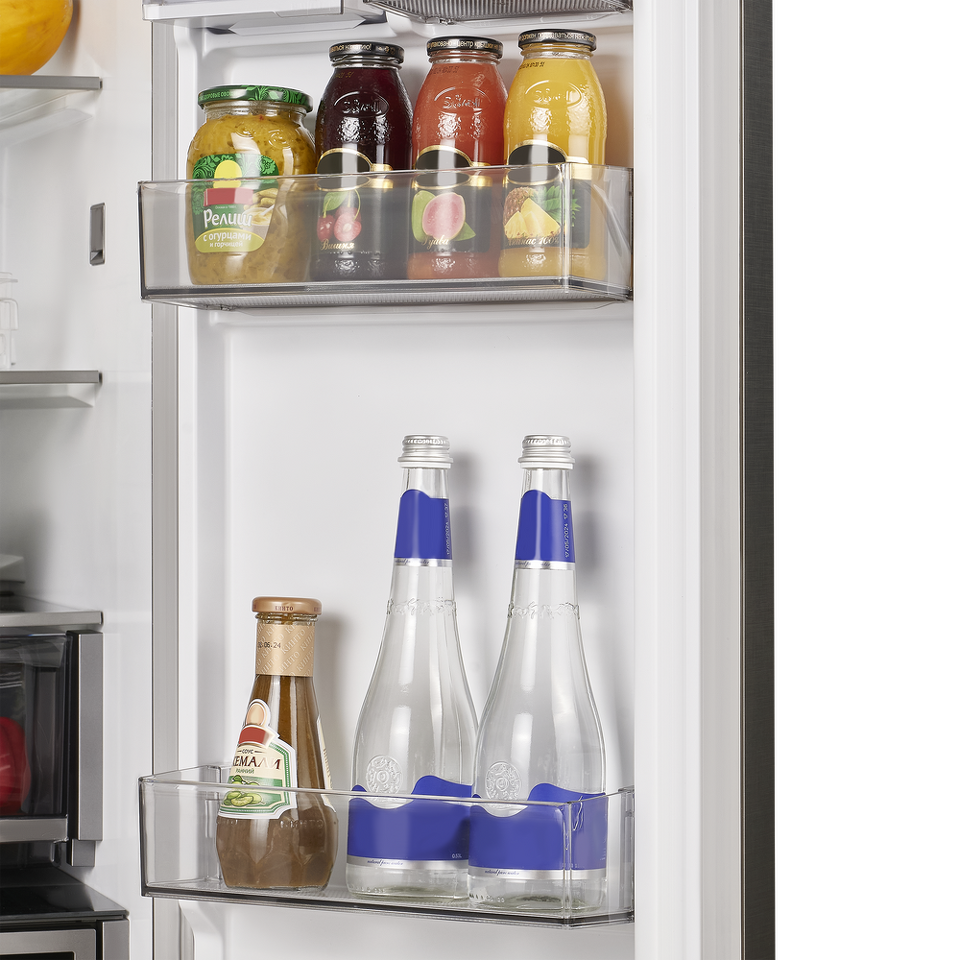 Благодаря LED-дисплею и управлению на дверце, можно не открывать холодильник для смены настроек. Внутрь не попадает тёплый воздух — лучше сохранность продуктов и меньше расход электроэнергии