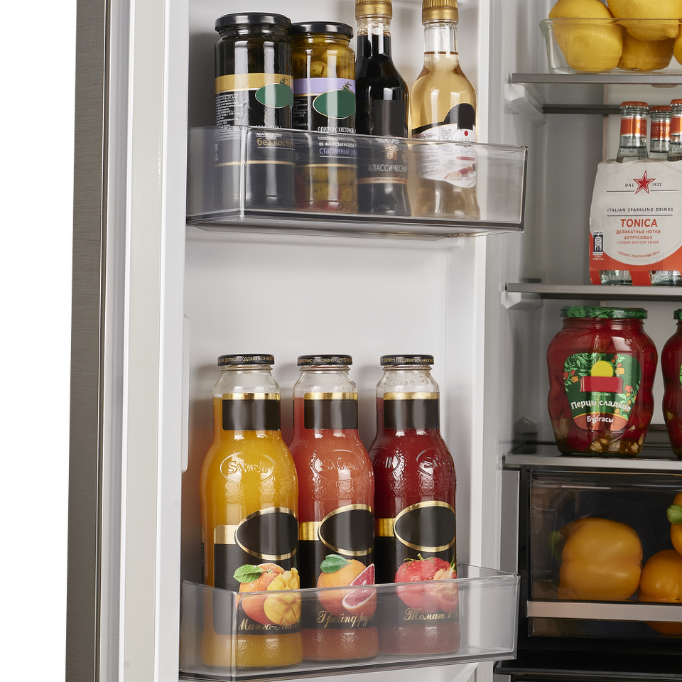 Инверторный компрессор способствует более точному поддержанию температуры в холодильнике. Другие плюсы инверторной технологии: улучшенная энергоэффективность, тихая работа и увеличенный рабочий ресурс.