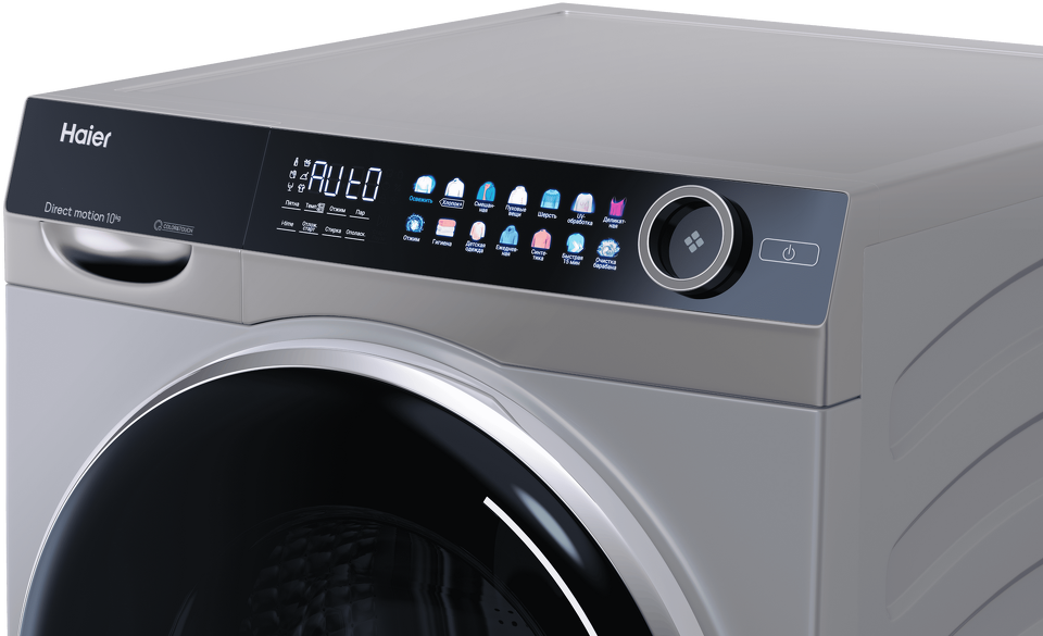 Haier HW100-BD14378S — полноразмерная стиральная машина серебристого цвета с технологиями последнего поколения. Увеличенный барабан диаметром 52,5 см вмещает до 10 кг белья, скорость отжима достигает 1400 оборотов в минуту, за эффективность стирки отвечает инверторный мотор с прямым приводом и пожизненной гарантией.