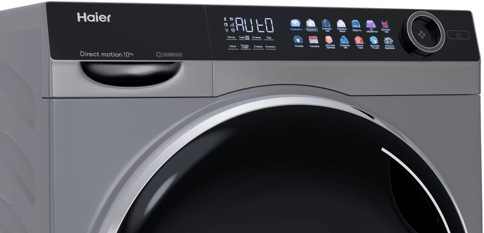 Модель принадлежит серии Color&Touch, центральный элемент дизайна — цветной LED-дисплей, с иконками 14 программ стирки для любых, в том числе нетривиальных сценариев. Например, режим «Освежить» подойдет для вещей, которым стирка в воде противопоказана, а обработка ультрафиолетом поможет удалить бактерии на одежде. Опционально можно активировать отложенный старт, паровые функции и Antistain — режим деликатно выведет пятна от косметики, вина и других загрязнений.