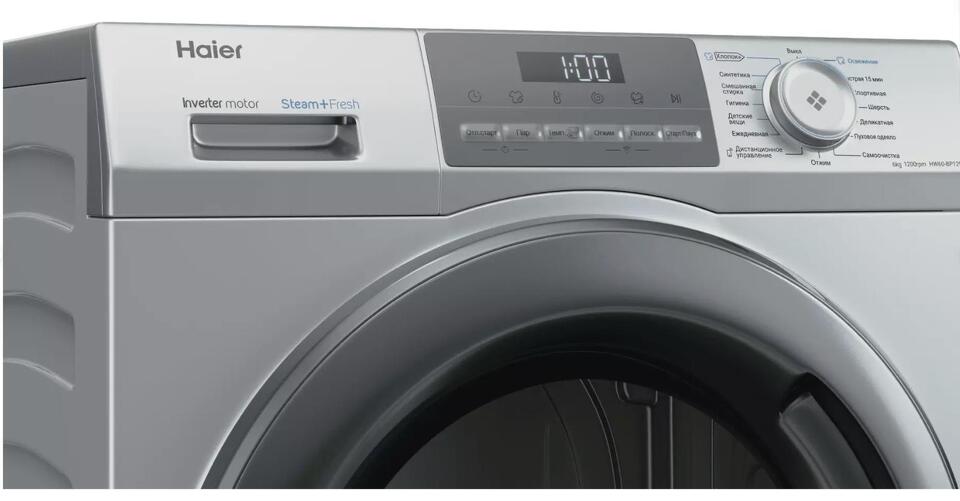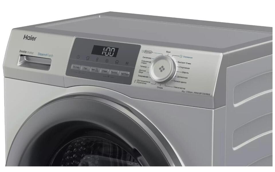 Haier HW60-BP12929BSE поддерживает опцию отложенного старта, которая запускает ее работу в установленные временные рамки. Время до конца стирки, наличие ошибок и другие данные отображаются на дисплее. Система автовзвешивания анализирует уровень загрузки барабана и определяет необходимый объем воды. Уход за деликатными материалами обеспечивается путем регулировки температуры. Об окончании работы оповещает звуковой сигнал.