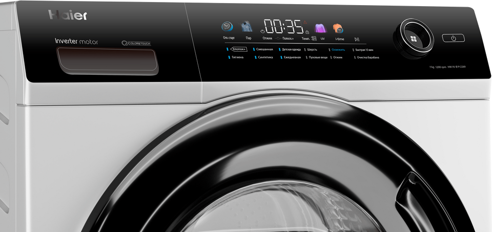 В распоряжении пользователя 12 интеллектуальных программ для стирки любых типов тканей: от хлопка и синтетики до пуха и шерсти. Диапазон рабочих температур — от 20 °C до 90 °C. Усилить эффект от программ позволяют дополнительные функции: UV-обработка уничтожает бактерии в воде и во внутреннем пространстве машинки, а обработка одежды паром разглаживает волокна ткани и облегчает глажку вещей после стирки. Также предусмотрен отложенный старт с таймером от 30 минут до 24 часов и возможность корректировать время выполнения программ за счет опции i-time. Настроить параметры стирки можно с помощью сенсорной панели управления с цветным дисплеем Color&Touch.