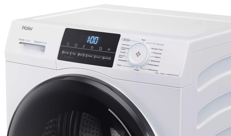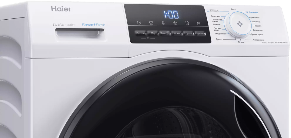 Новая стирально-сушильная машина Haier способна отстирать до 8 кг белья, а просушить до 5 кг, при этом глубина её составляет всего 45 см. Предусмотрены все самые необходимые программы стирки от Ежедневной и Детской до стирки Постельного белья и Шерсти. Для слабо загрязненного белья в наличии есть программа Быстрая 15 мин. В данной модели предусмотрена опция добавления пара во время стирки для обеспечения гигиены, удаления аллергенов, бактерий и запахов. Интересной является также функция i-Refresh — это паровая обработка одежды, но теперь её можно применять отдельно к разным типам тканей: хлопку, синтетике и шерсти. Благодаря тому, что одежда не соприкасается с водой и отсутствует механическое воздействие, данная опция обеспечивает ещё более глубокую заботу о деликатных тканях и позволяет избавиться от неприятных запахов, вернуть одежде форму и мягкость.