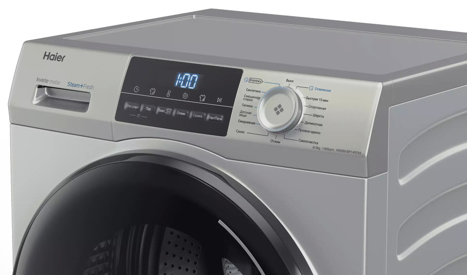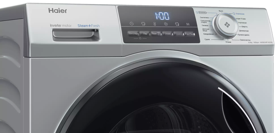 Новая стирально-сушильная машина Haier способна отстирать до 8 кг белья, а просушить до 5 кг, при этом глубина её составляет всего 45 см. Предусмотрены все самые необходимые программы стирки от Ежедневной и Детской до стирки Постельного белья и Шерсти. Для слабо загрязненного белья в наличии есть программа Быстрая 15 мин. В данной модели предусмотрена опция добавления пара во время стирки для обеспечения гигиены, удаления аллергенов, бактерий и запахов. Интересной является также функция i-Refresh — это паровая обработка одежды, но теперь её можно применять отдельно к разным типам тканей: хлопку, синтетике и шерсти. Благодаря тому, что одежда не соприкасается с водой и отсутствует механическое воздействие, данная опция обеспечивает ещё более глубокую заботу о деликатных тканях и позволяет избавиться от неприятных запахов, вернуть одежде форму и мягкость.