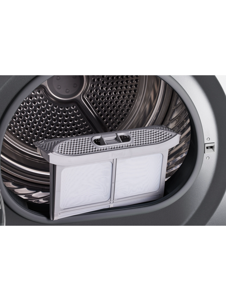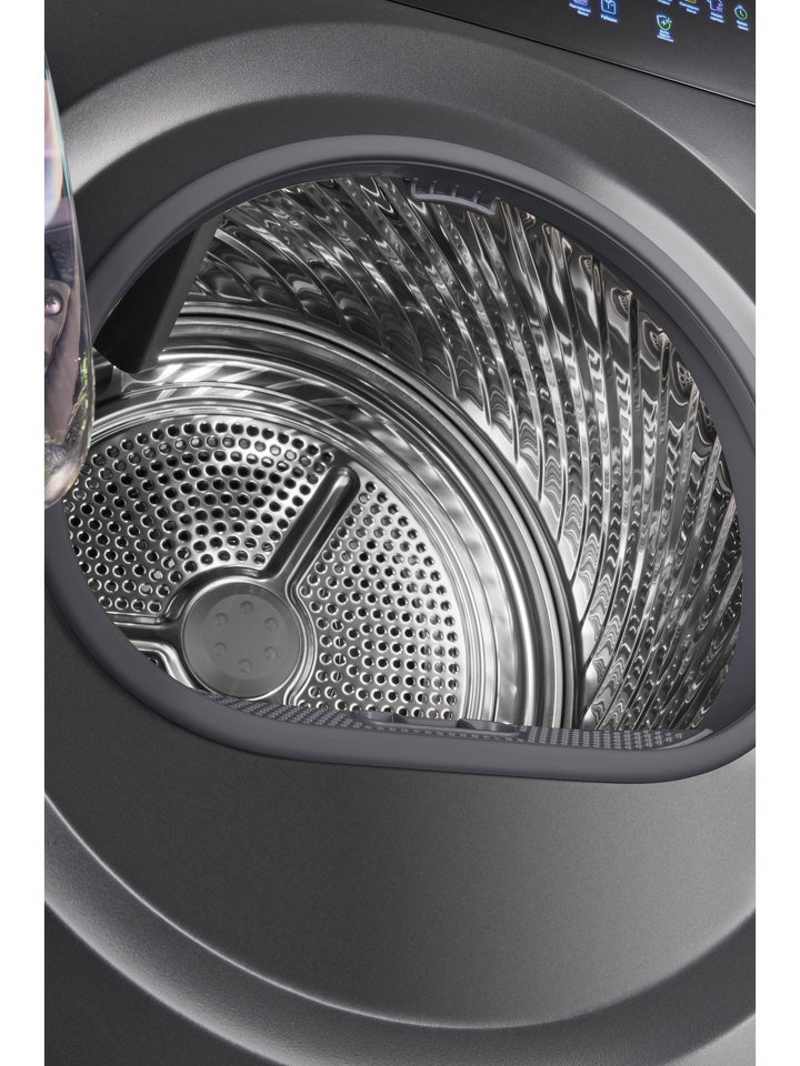 Барабаны отделений выполнены из нержавеющей стали. Загрузка стиральной и сушильной машин - по 10,5 килограммов сухого и влажного белья соответственно. Для оптимального результата рекомендована неполная загрузка. Угол открытия в 135° обеспечивает полное раскрытие каждой дверцы и свободный доступ к одежде и домашнему текстилю.
