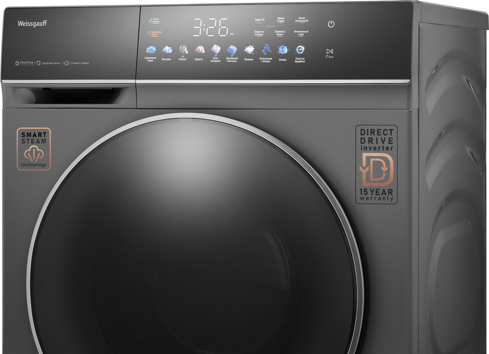 Функция "Пар"- это инновационное решение от компании Weissgauff, которое позволит придать свежести вещам, а также устранить неприятный запах, легкие загрязнения и складки на одежде, бережно сохраняя при этом структуру волокон ткани. При выборе режимов, имеющих в своем цикле данную функцию, пар добавляется в ходе цикла в процессе работы программы!