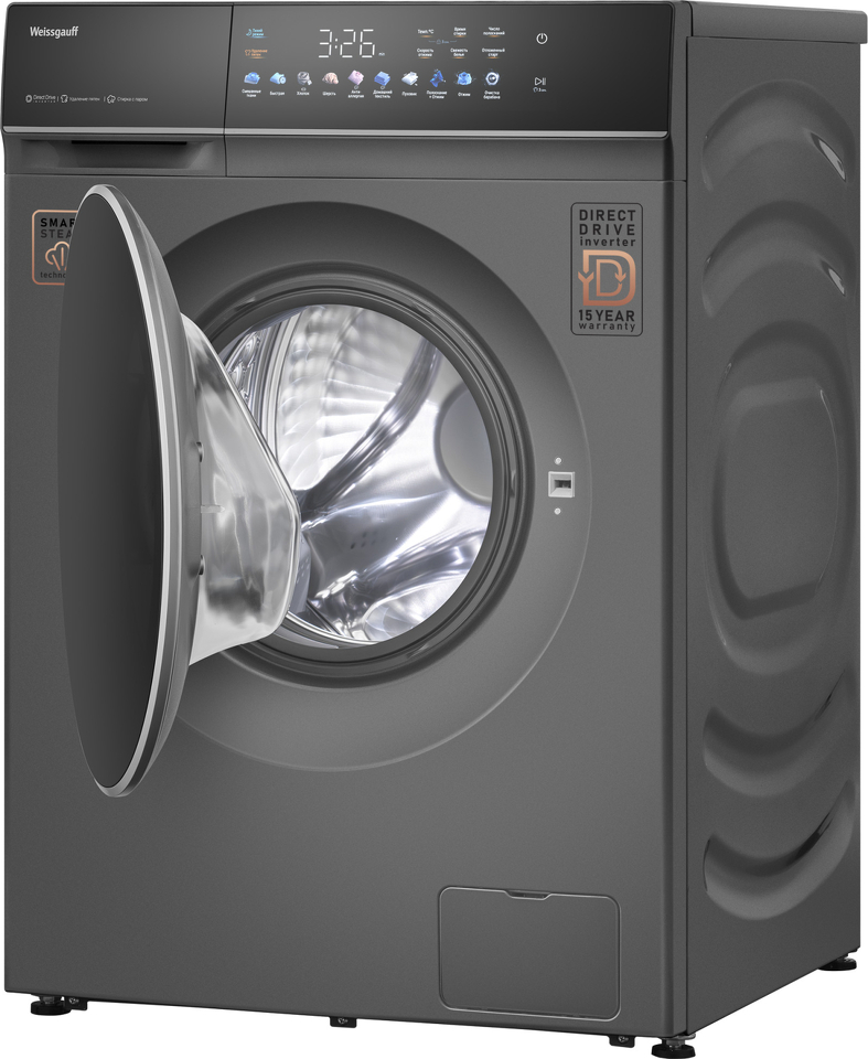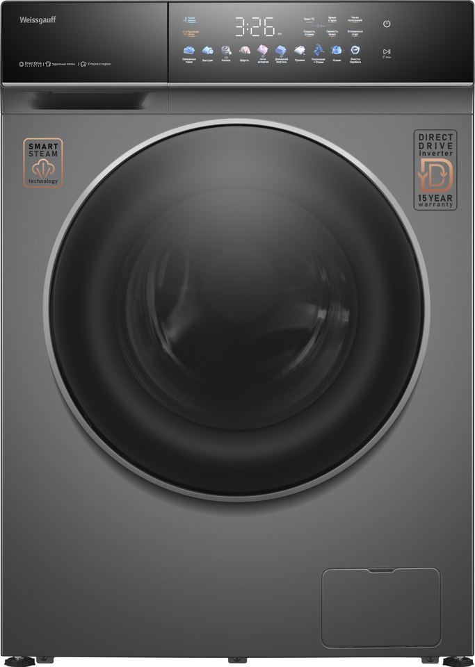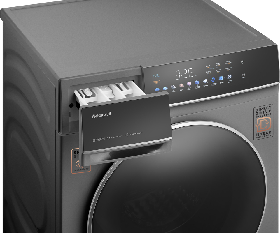 Отдельностоящая стиральная машина Weissgauff, оснащенная прямым приводом, инверторным двигателем и функцией пара, имеющая показатели загрузки до 10,5 кг белья и скорости отжима до 1200 оборотов в минуту, а также цветной дисплей SMART SCREEN - это одна из наиболее передовых моделей Weissgauff в категории стиральных машин!