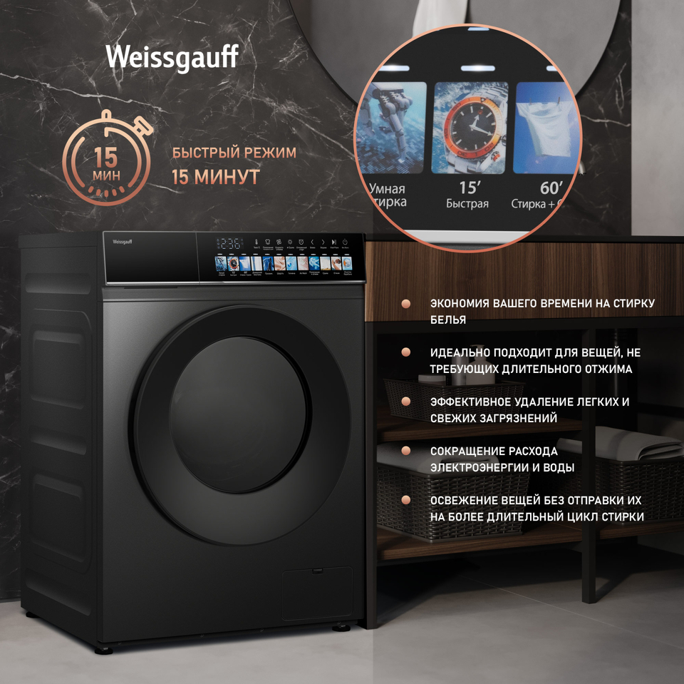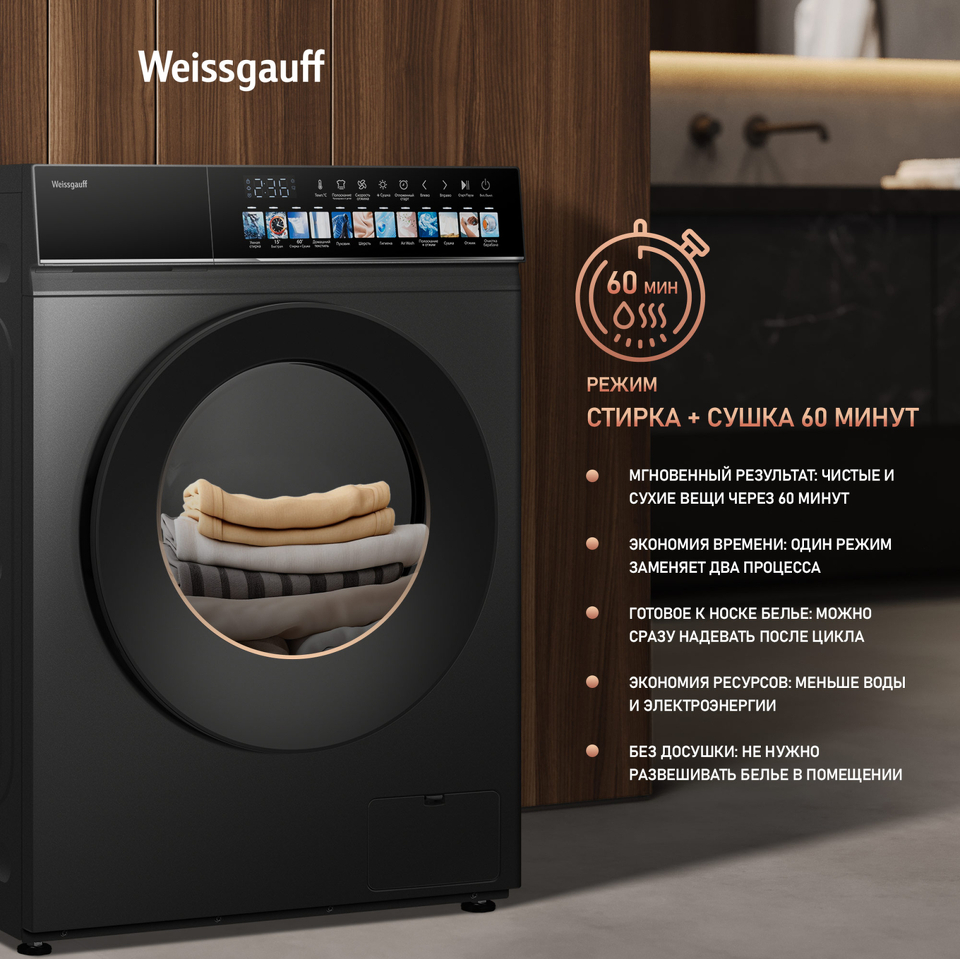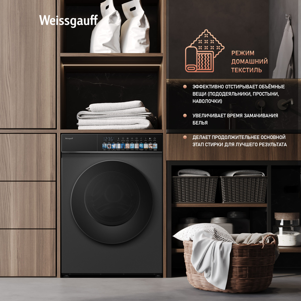 Отдельностоящая стиральная машина Weissgauff с функцией сушки и инверторным двигателем работающий по особой технологии BLDC, имеющая показатели загрузки до 10,5 кг белья при стирке и до 7 кг белья при сушке, скорость отжима до 1200 оборотов в минуту, а также цветной дисплей SMART SCREEN - это одна из наиболее передовых моделей Weissgauff в категории стиральных машин!