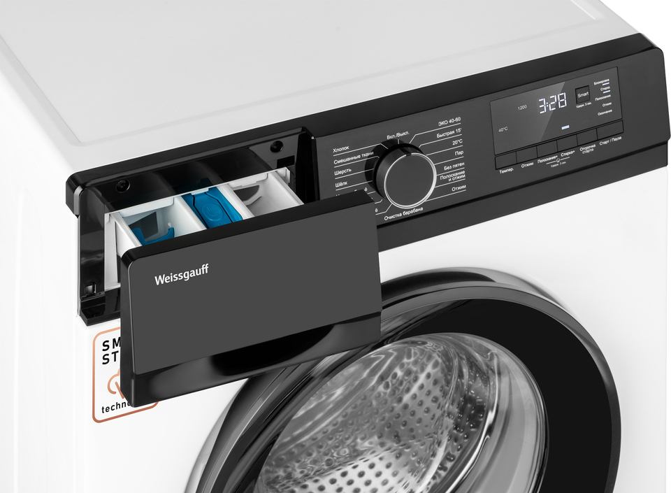 Отдельностоящая стиральная машина Weissgauff, оснащенная функцией пара и автопрограммой Smart, имеющая показатели загрузки до 6 кг белья и скорости отжима до 1000 оборотов в минуту - это настоящее качество по разумной цене!