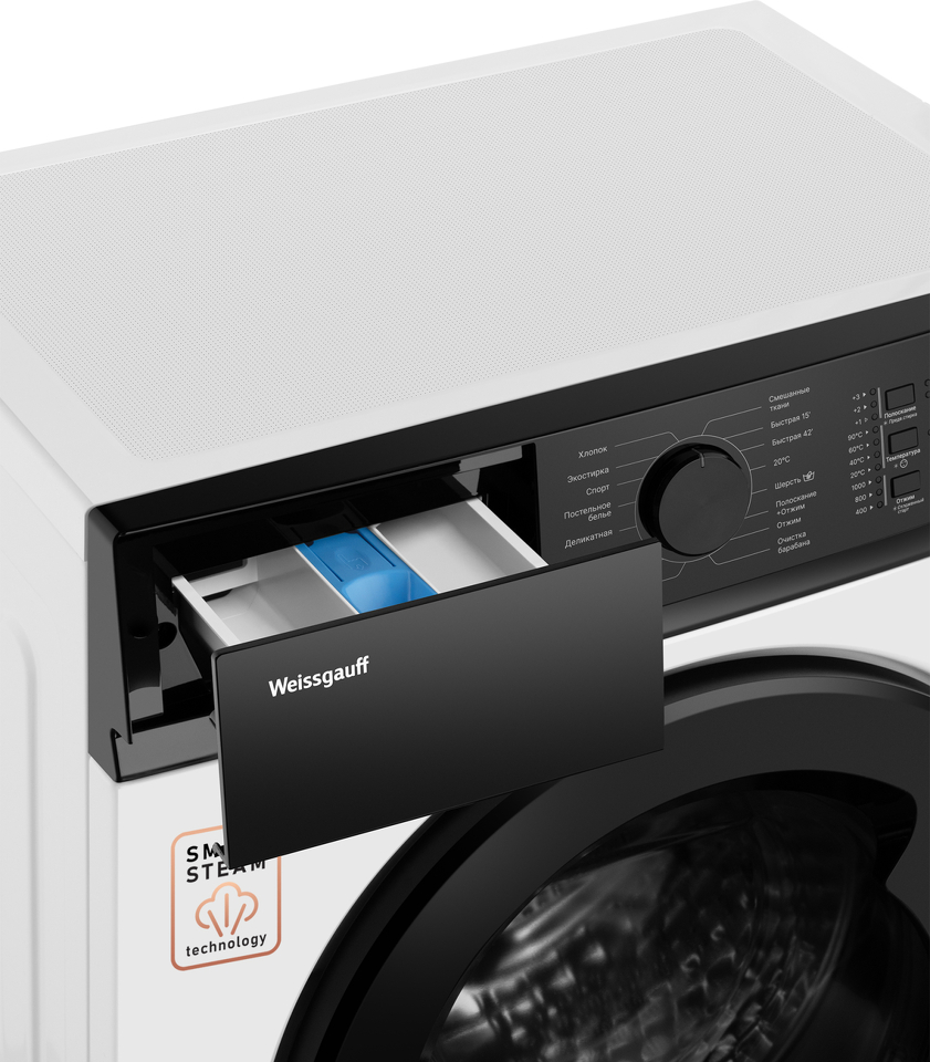 • Функция "Пар" - это инновационное решение от компании Weissgauff, которое позволит придать свежести вещам, а также устранить неприятный запах, легкие загрязнения и складки на одежде, бережно сохраняя при этом структуру волокон ткани. При выборе данной функции, пар добавляется в ходе цикла в процессе работы программы.