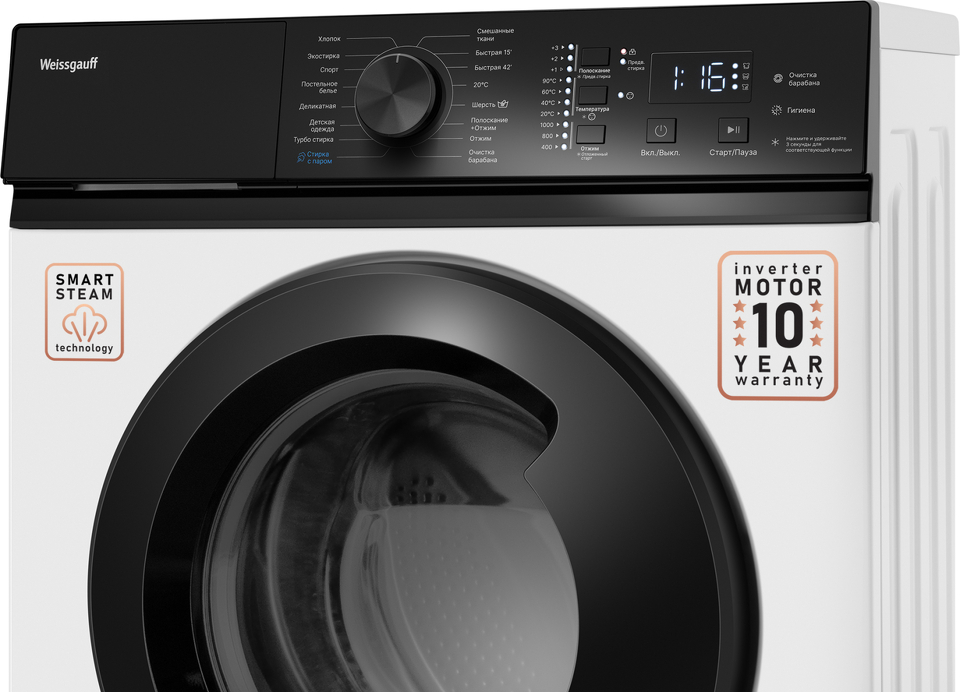 • 10 лет гарантии на инверторный двигатель - это живое подтверждение немецкой уверенности Weissgauff в качестве выпускаемой нами продукции!