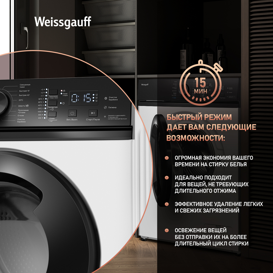 • Режим Быстрая стирка 15 минут - это по-настоящему фантастическая программа для тех, кто умеет ценить своё время!