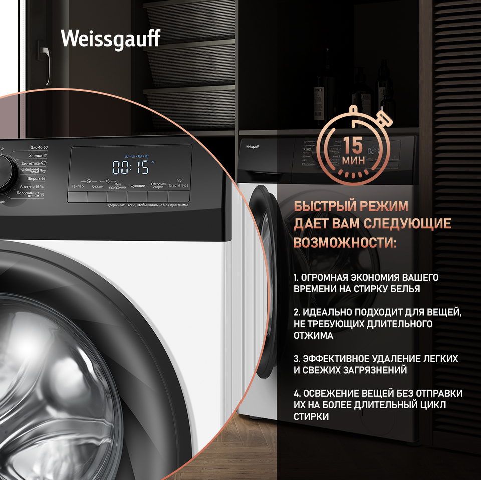 Режим "Быстрая стирка" 15 минут - это по-настоящему фантастическая программа для тех, кто умеет ценить своё время!